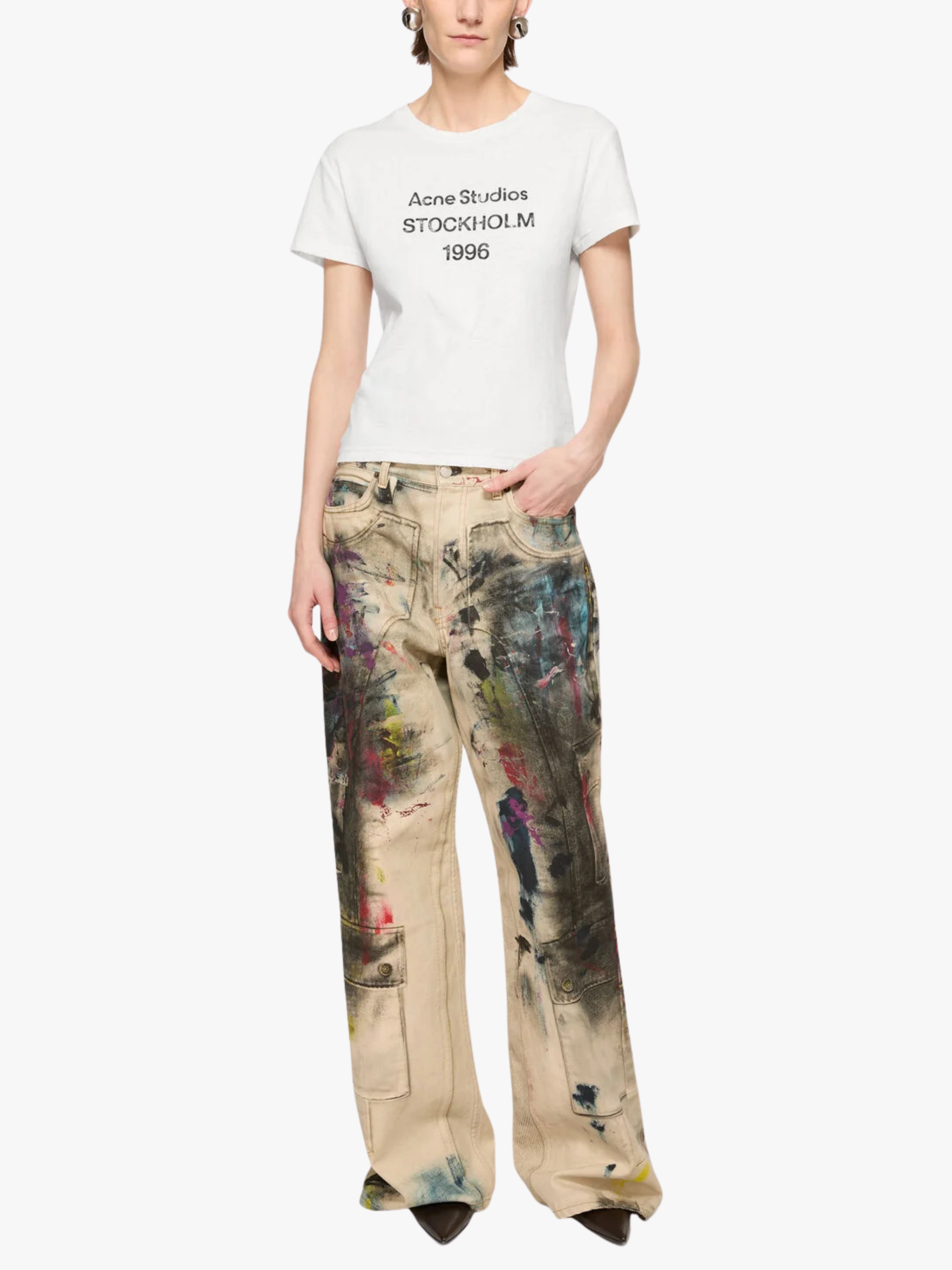 • Frontprint mit „Acne Studios 1996“ Logo für ikonischen Designer‑Look