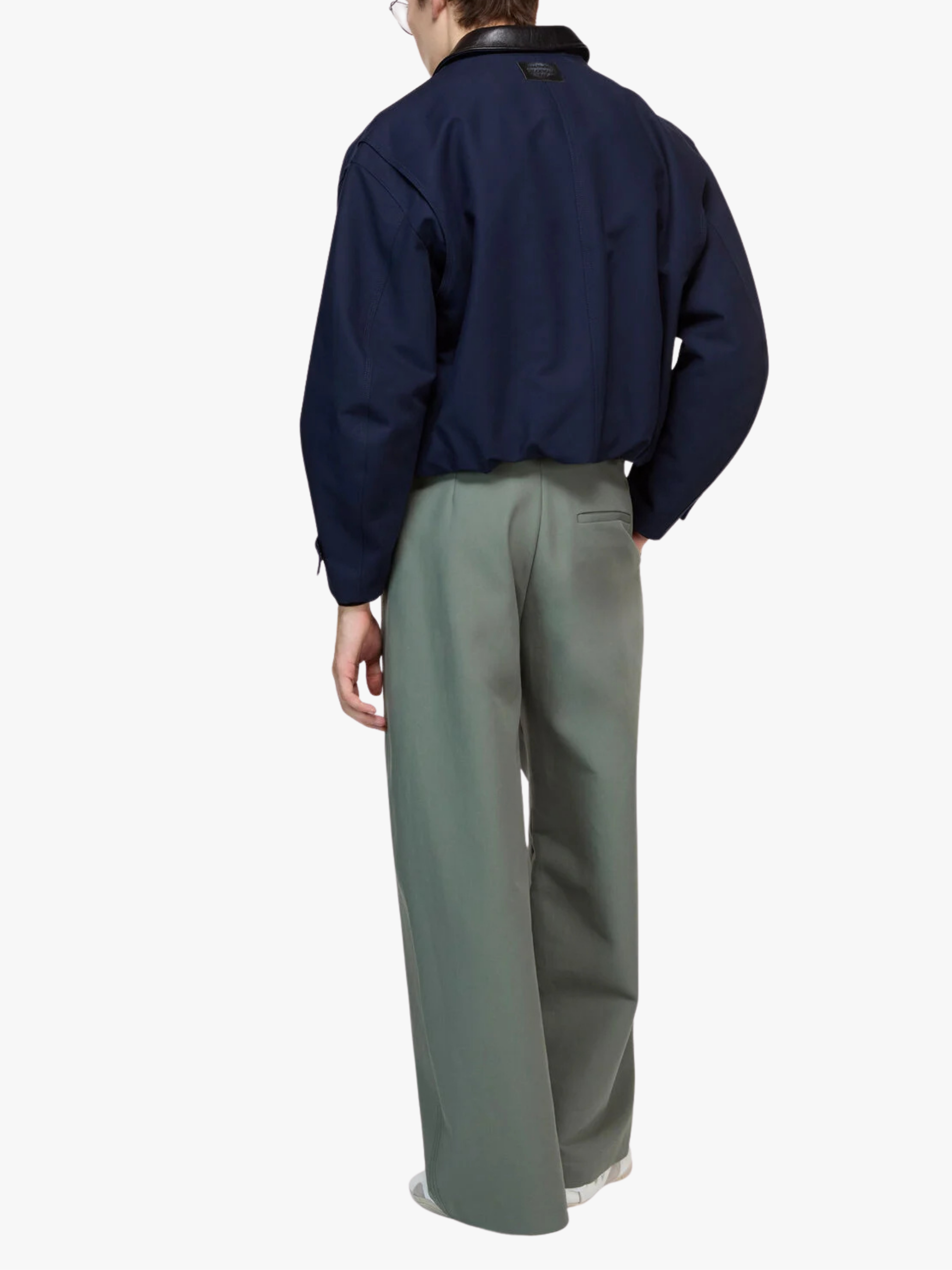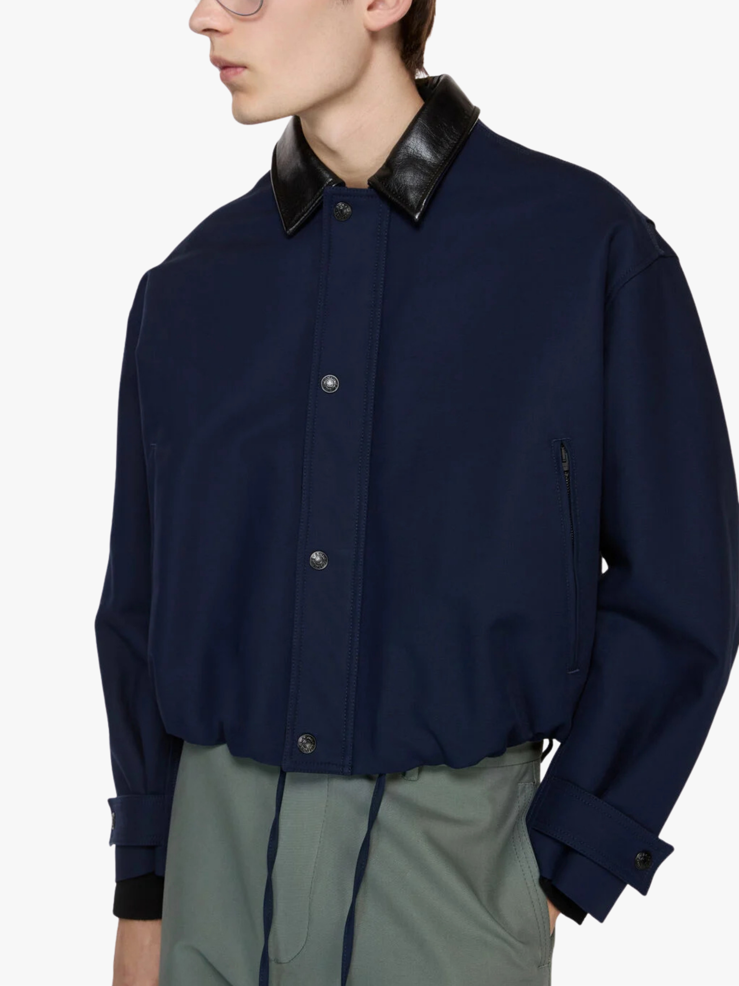 • Kontrastierender Kragen aus Kunstleder