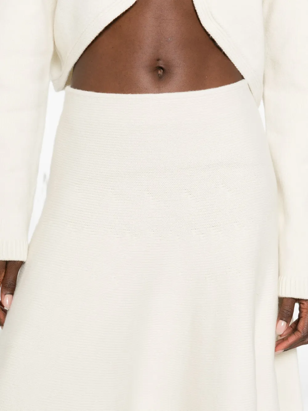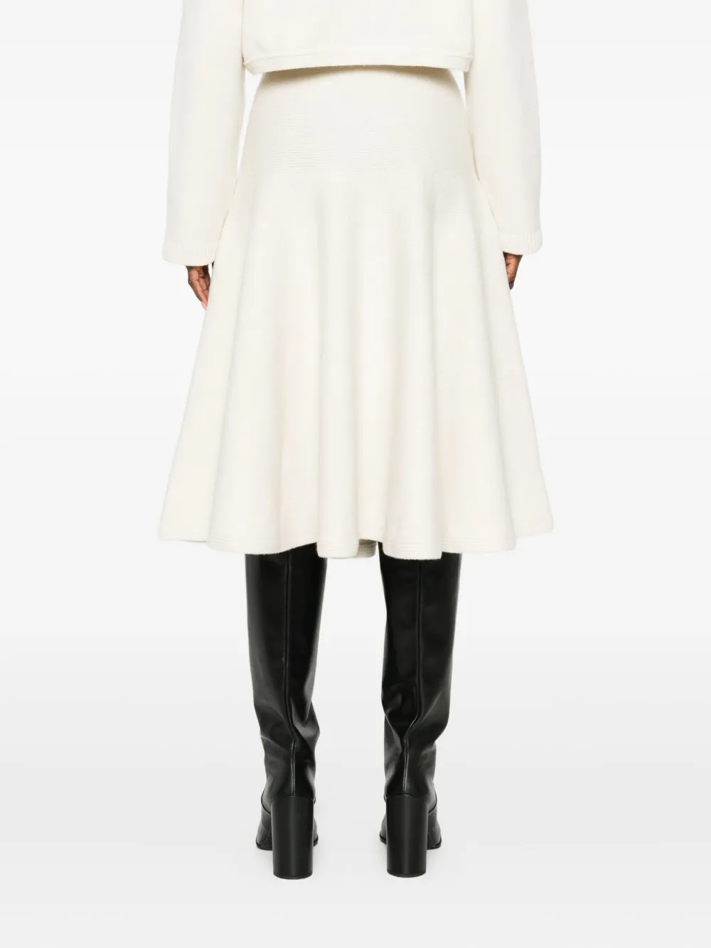 Der fein gestrickte Midirock in A-Linie und Weiß von Alaïa mit folgenden Merkmalen:
