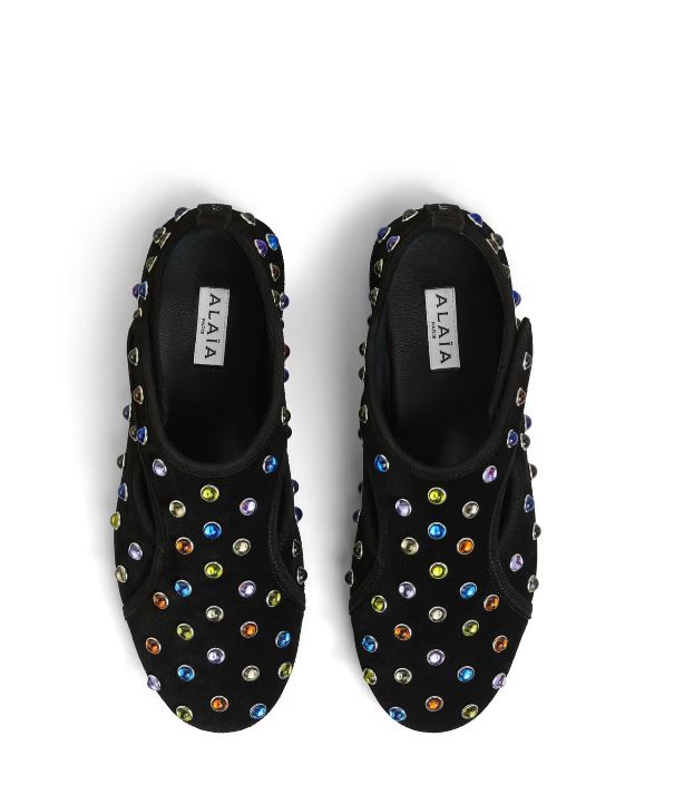 Die Flex Slippers aus Wildleder in Schwarz/Multicolor von Alaïa mit folgenden Merkmalen: