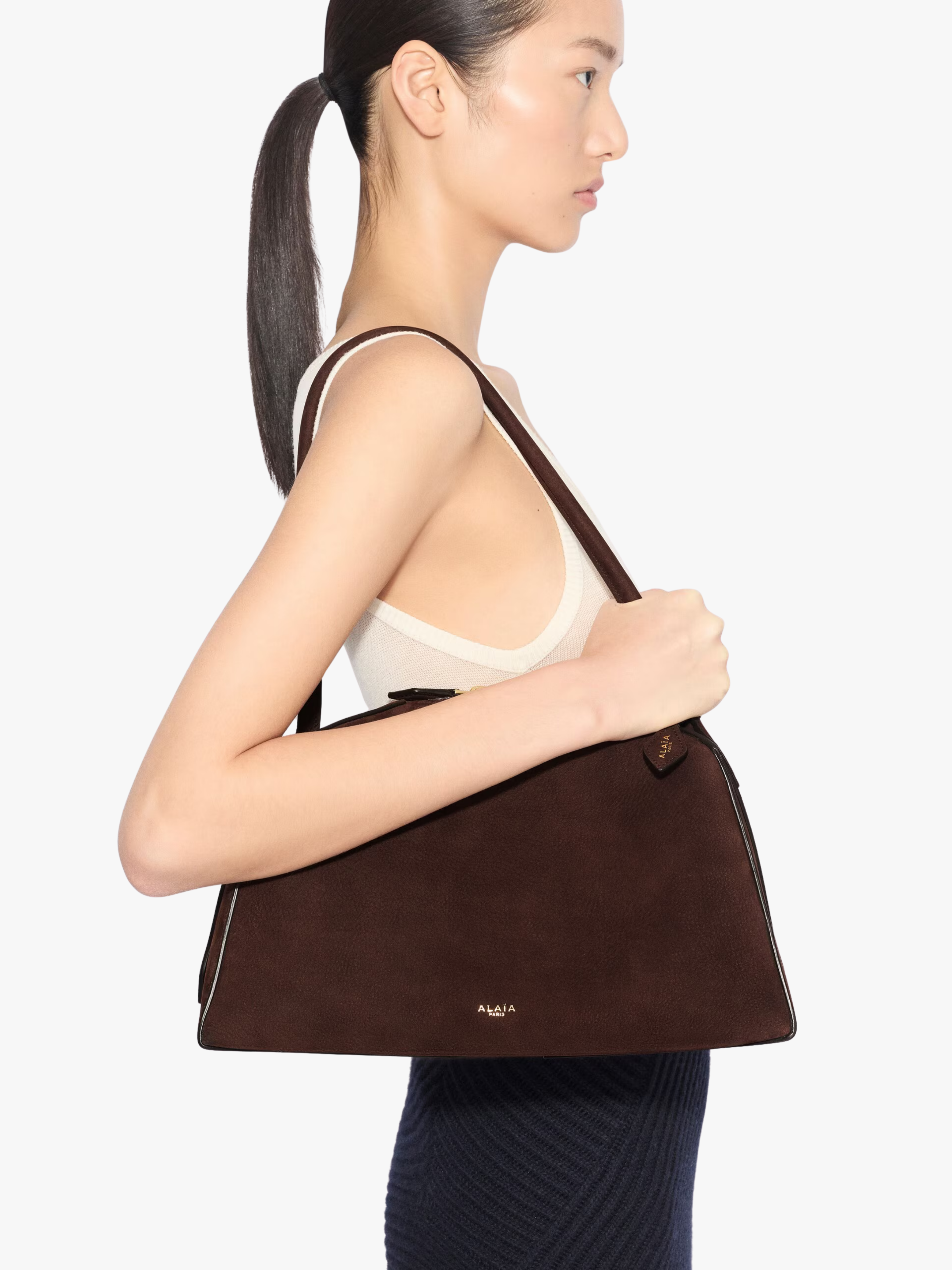 Die Le Bouledogue Tasche in Dunkelbraun von Alaïa mit folgenden Merkmalen: