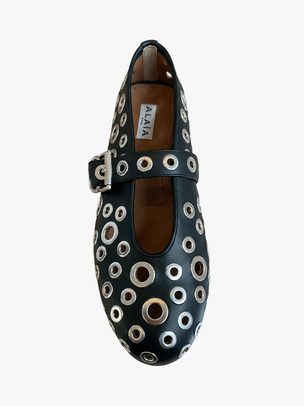 Die verzierte Ballerina aus Leder in Schwarz von Alaïa mit folgenden Merkmalen: