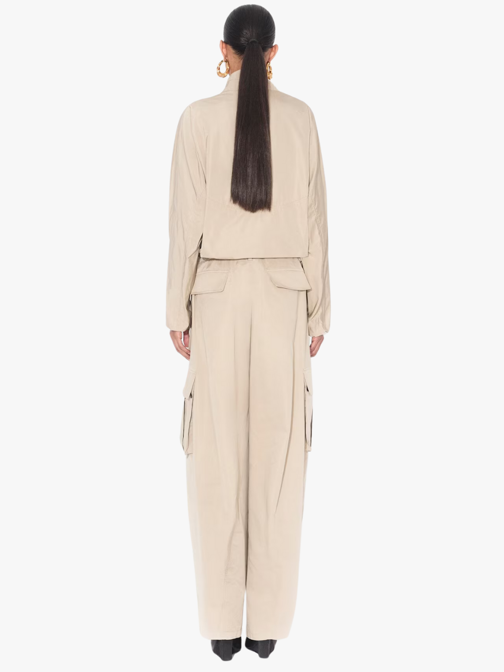 • Elastischer Saum mit Kordelzug und goldfarbene Hardware-Details für eine elegante Sport-Ästhetik.