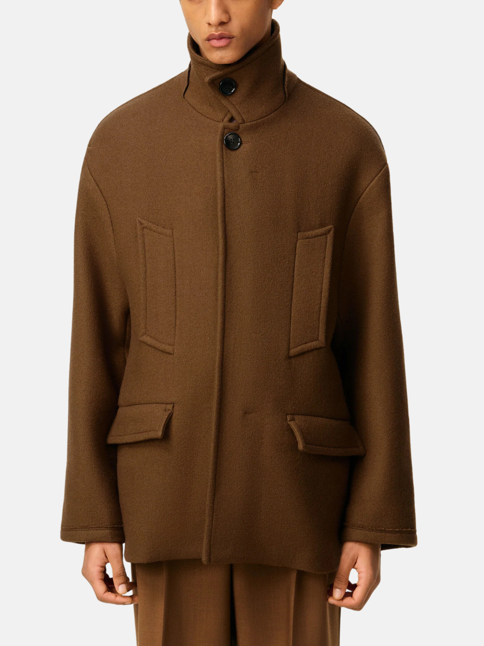 Der Brown Wool Oversized High Collar Pea Coat von AMI Paris mit folgenden Merkmalen: