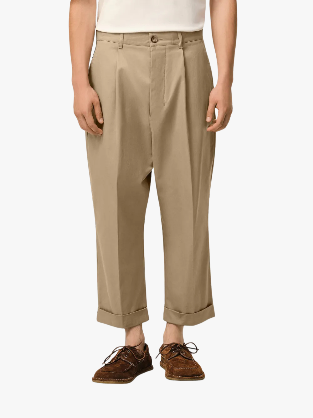 • Klassische Bundfaltenhose mit gebügelter, definierter Falte vorne für eine elegante Silhouette.