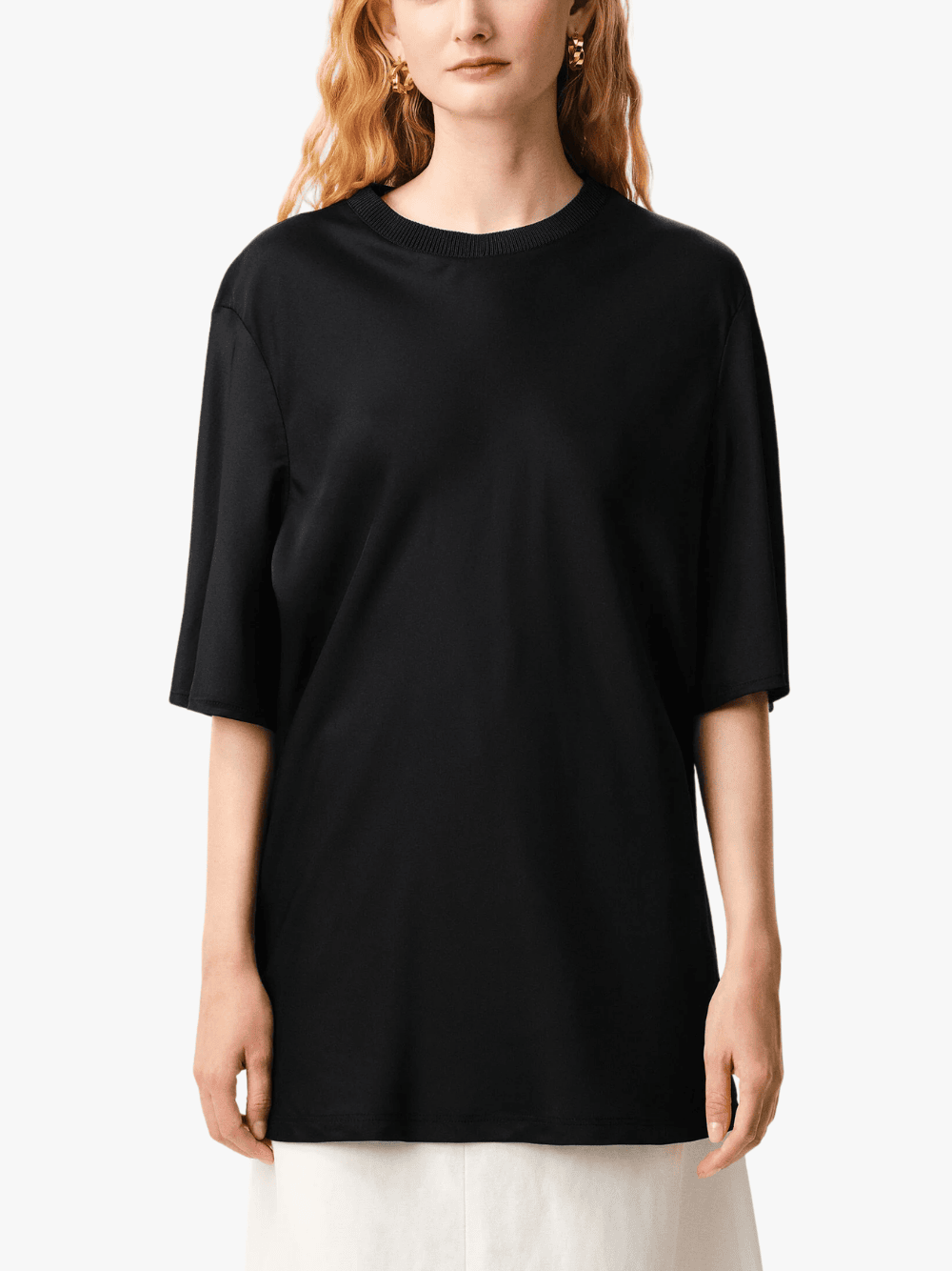 • Gefertigt aus leicht glänzendem Satin-Jersey für eine elegante, fließende Optik.