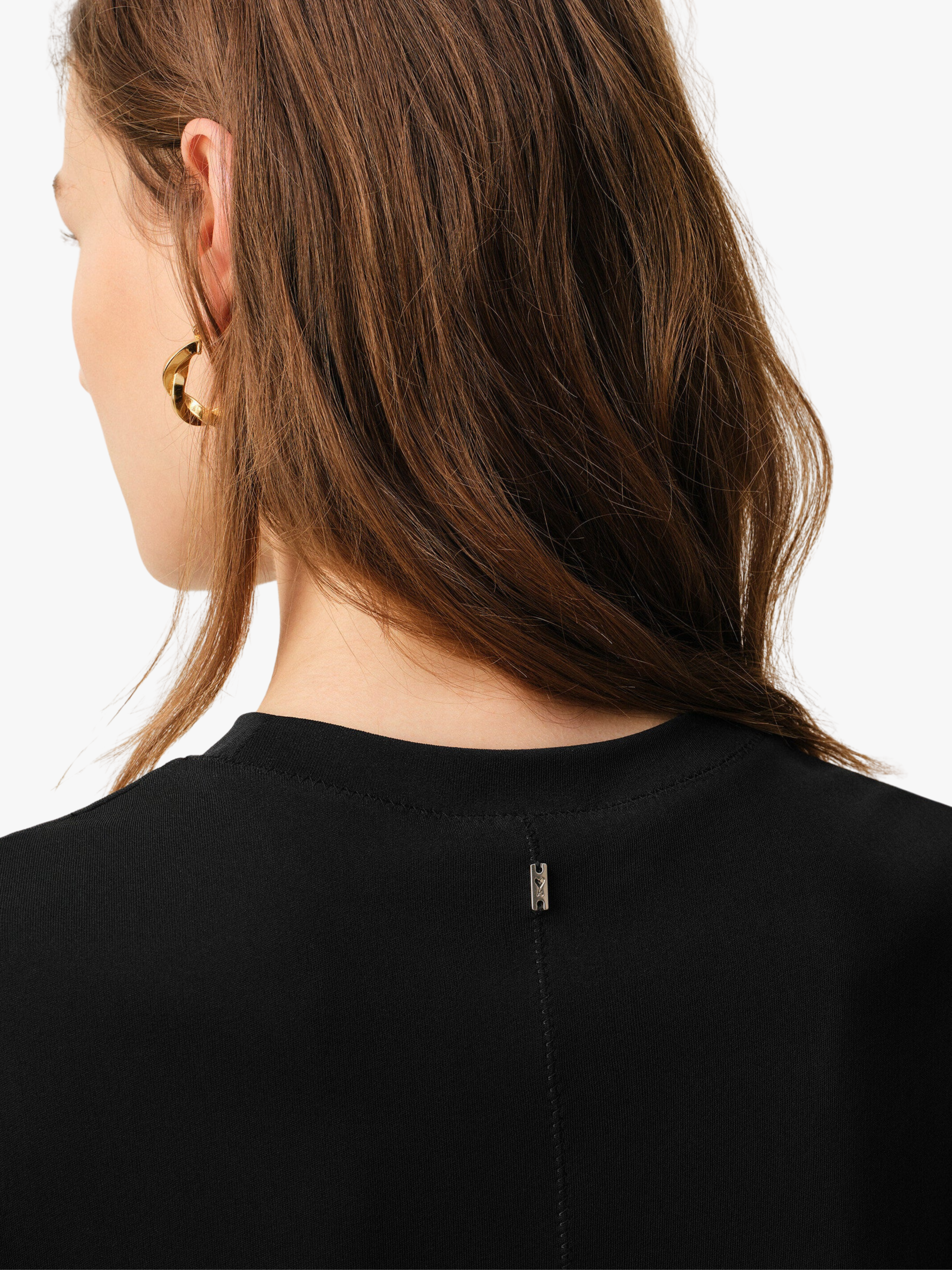 • Silberfarbene Ami de Coeur Metallplakette mittig unter dem rückseitigen Kragen.