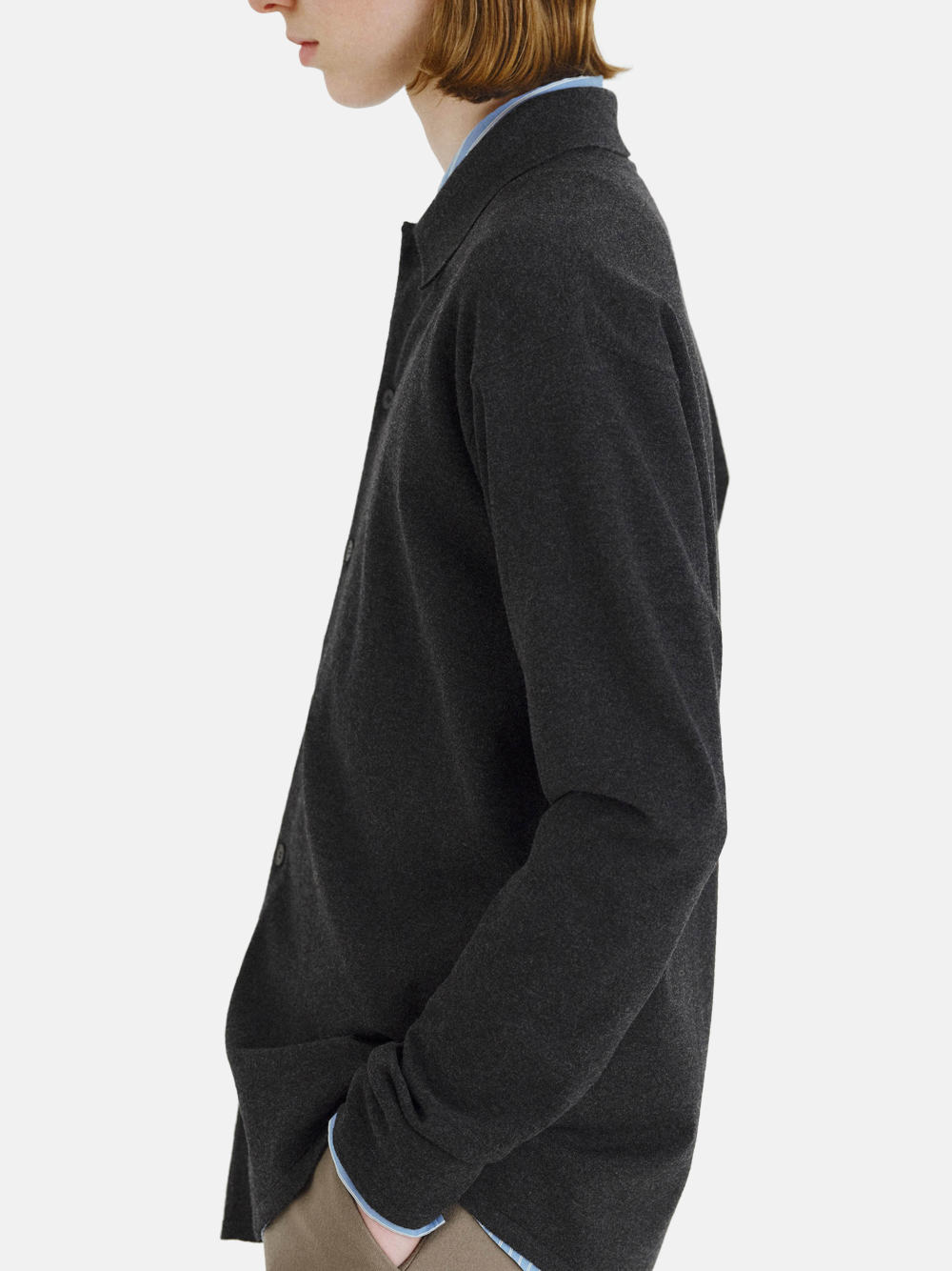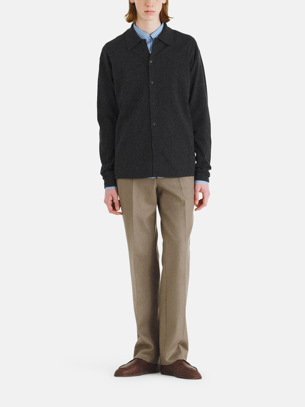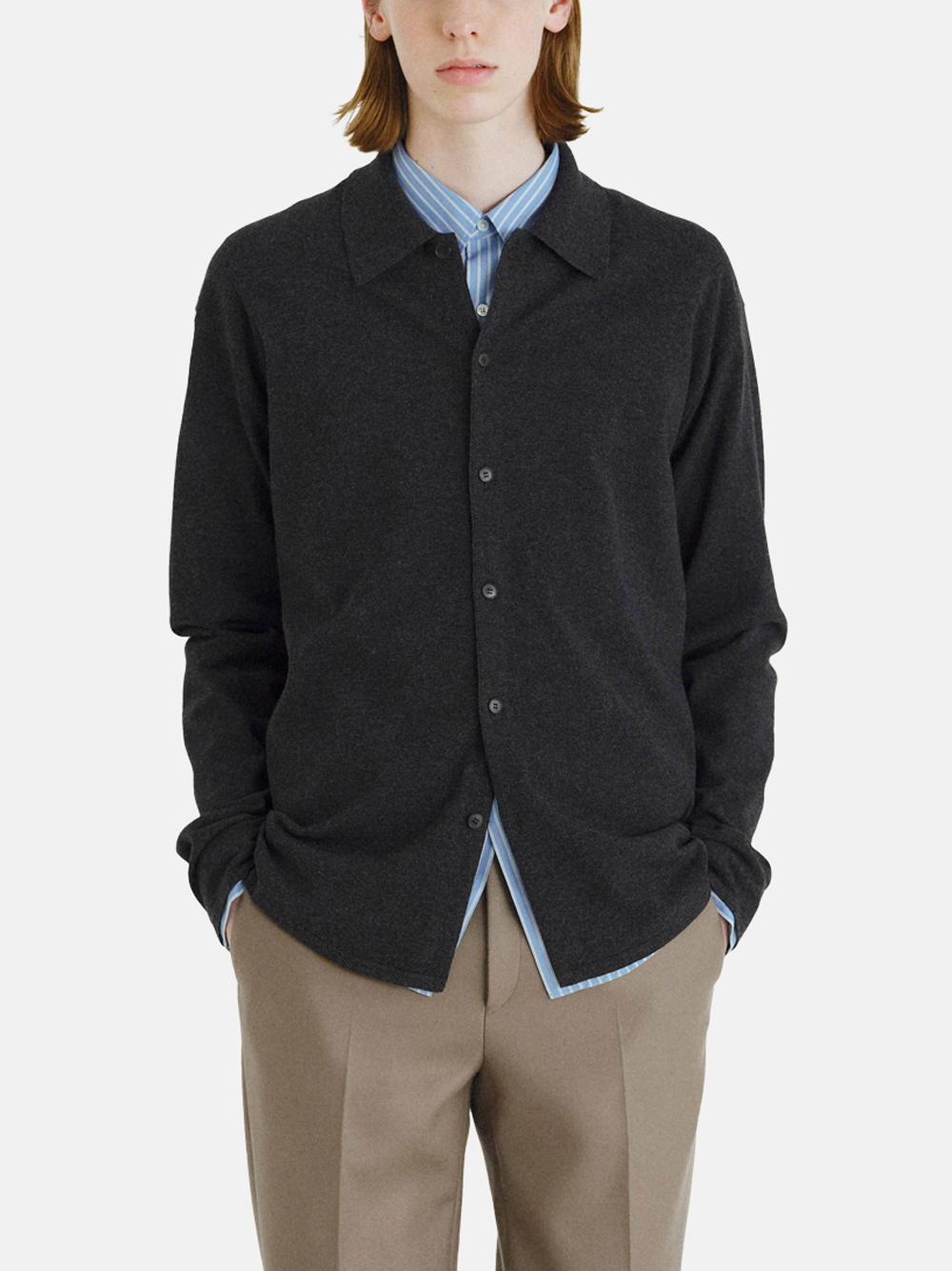 Der High Twist Wool Knit Shirt Cardigan in Dunkelgrau (Charcoal) von AURALEE mit folgenden Merkmalen: