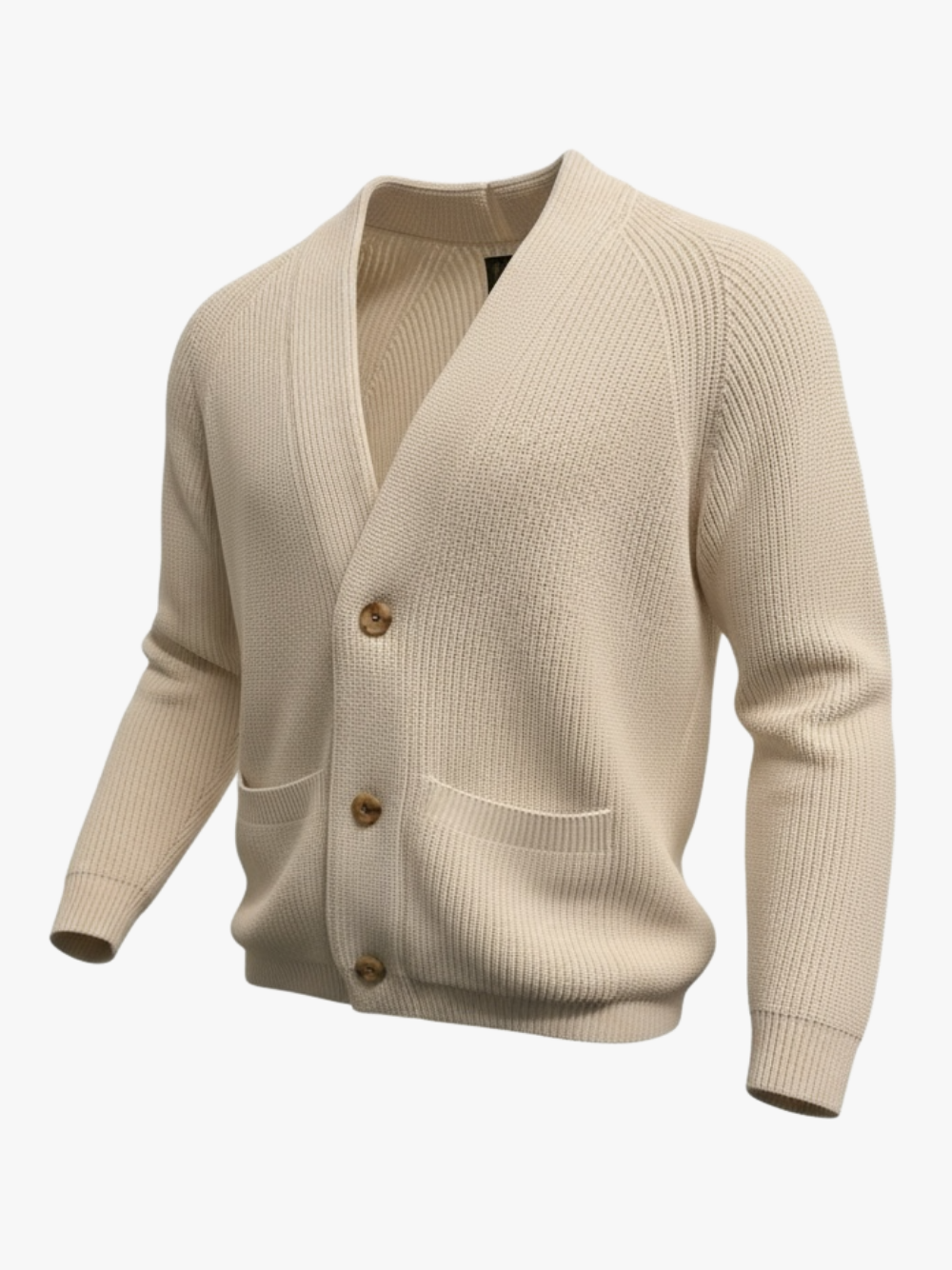 Der Essential Superior High Gauge Merino Cardigan in Ivory von BATONER mit folgenden Merkmalen: