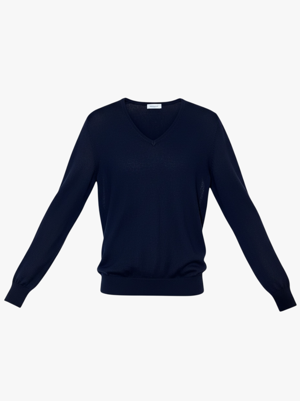 Bungalow Kaschmir-Pullover mit V-Ausschnitt in Navy.