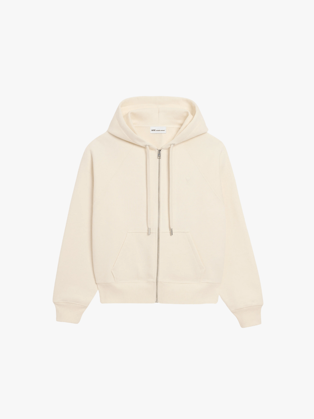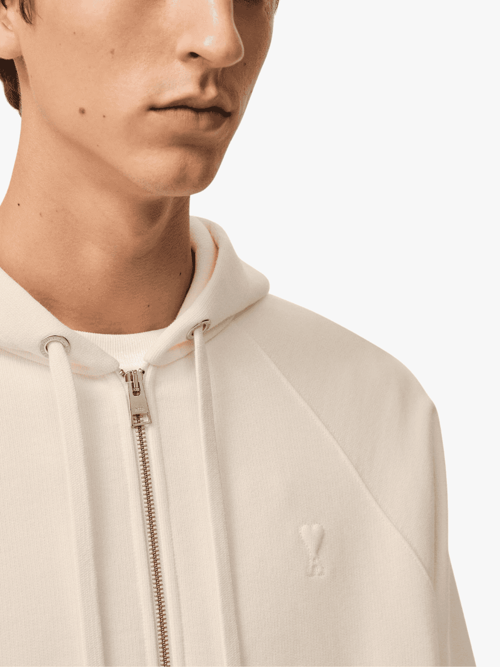 The Ami de Coeur zip-up hoodie in white from AMI Paris features: