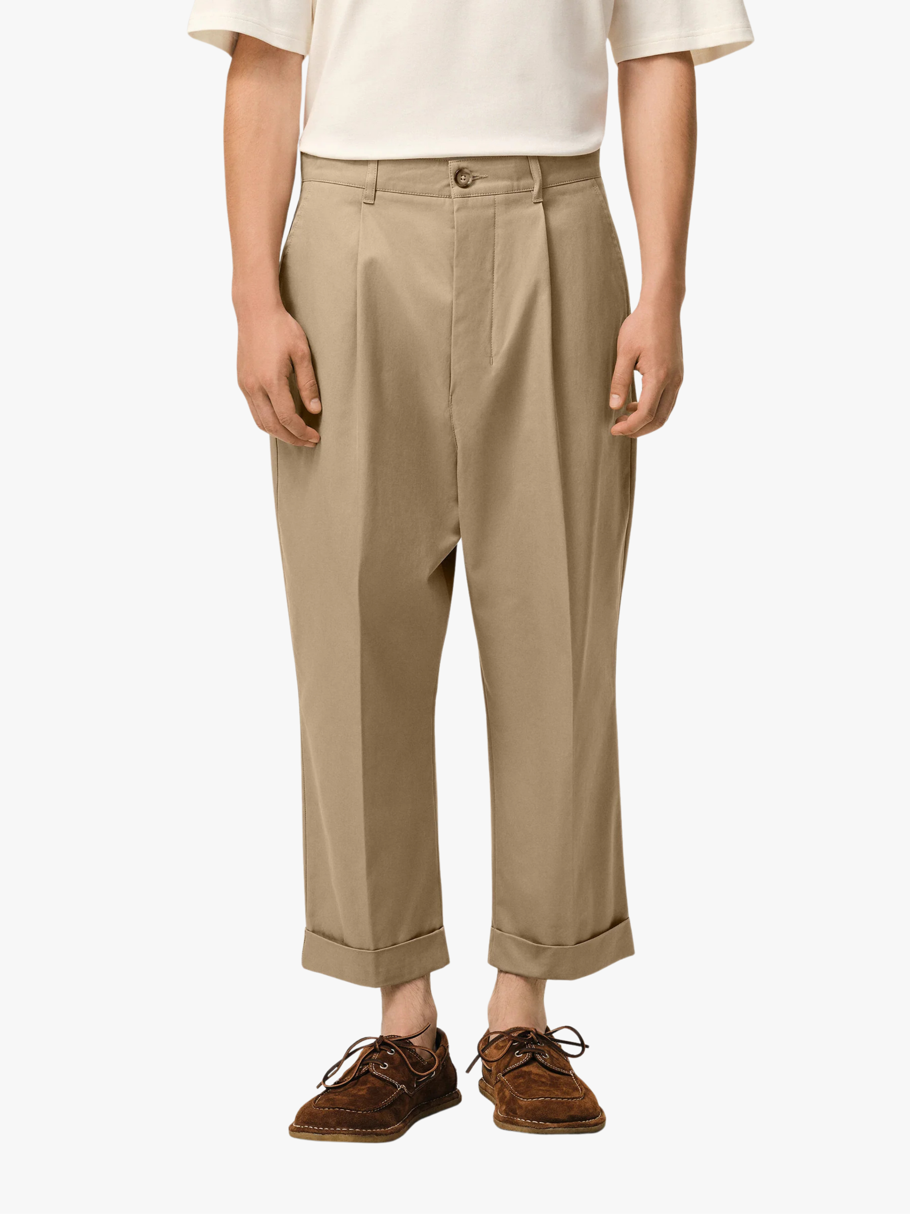 • Carrot oversized fit trousers in cotton gabardine with front pleats