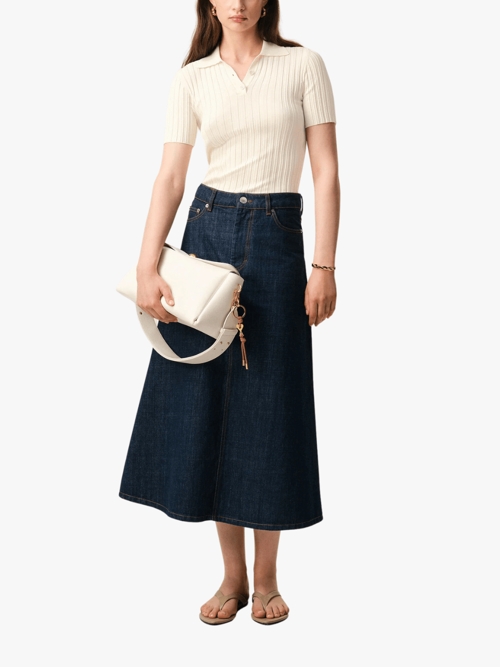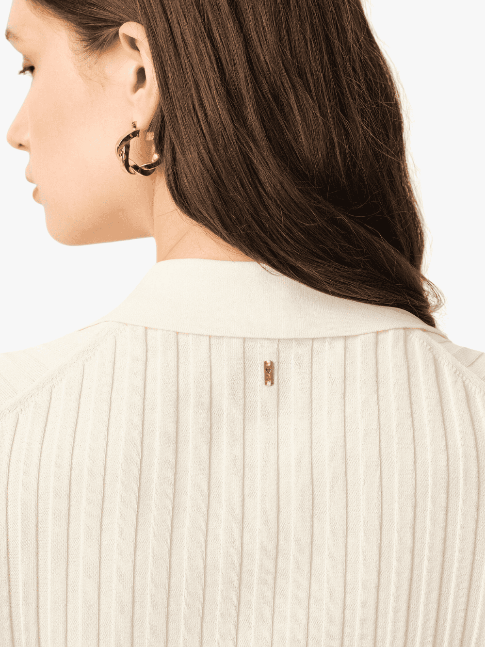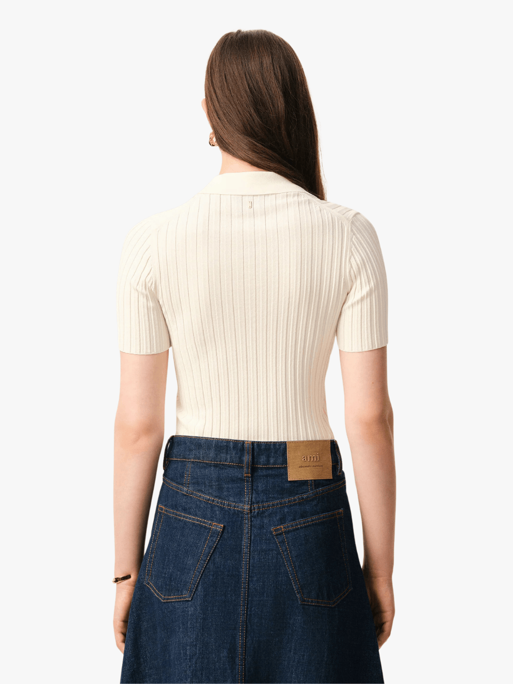 The short-sleeve knit polo shirt in cream from AMI Paris features the following: