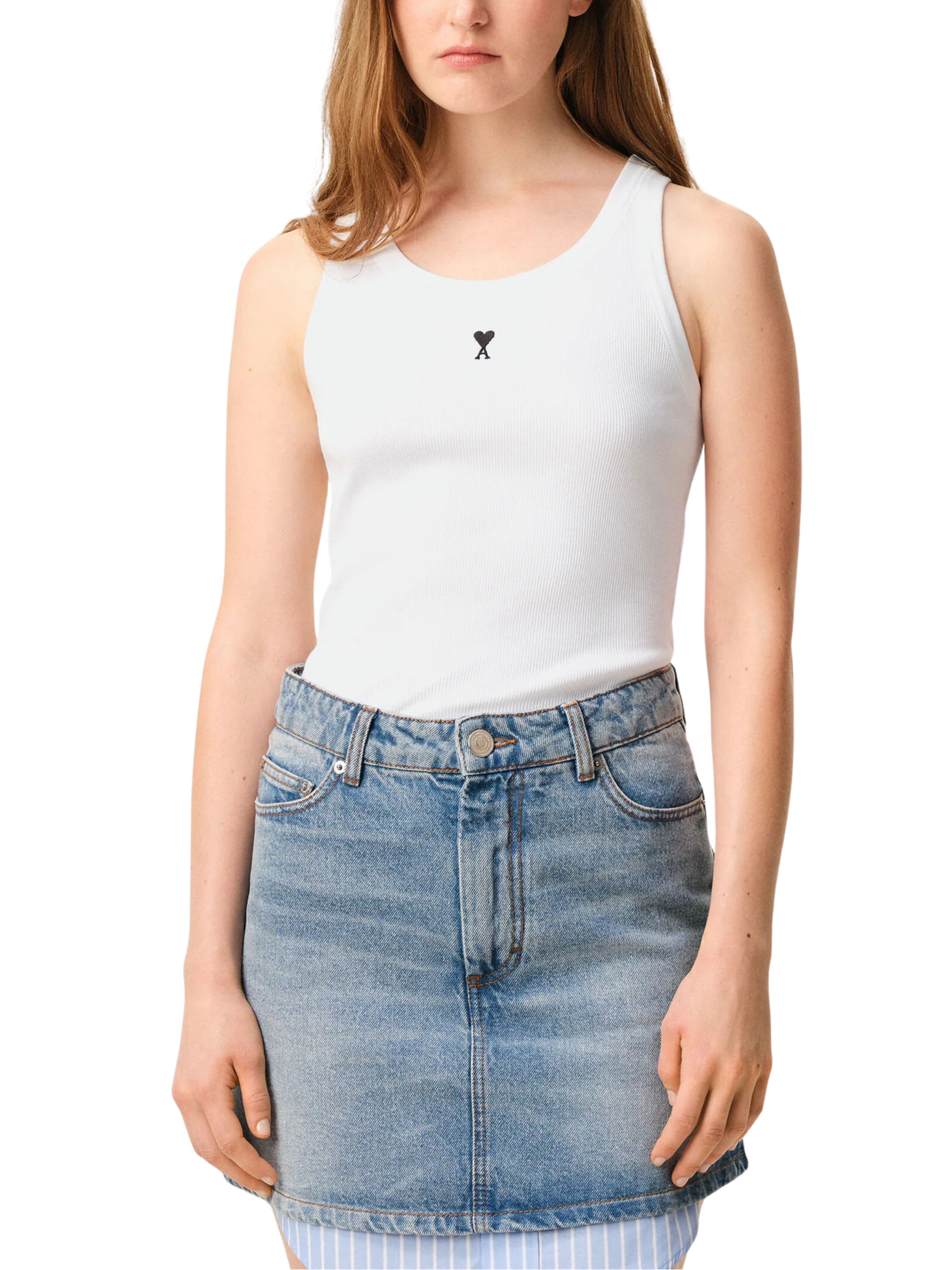 The Ami Paris White Cotton Ami de Coeur Tank Top in white from Ami Paris with the following features: