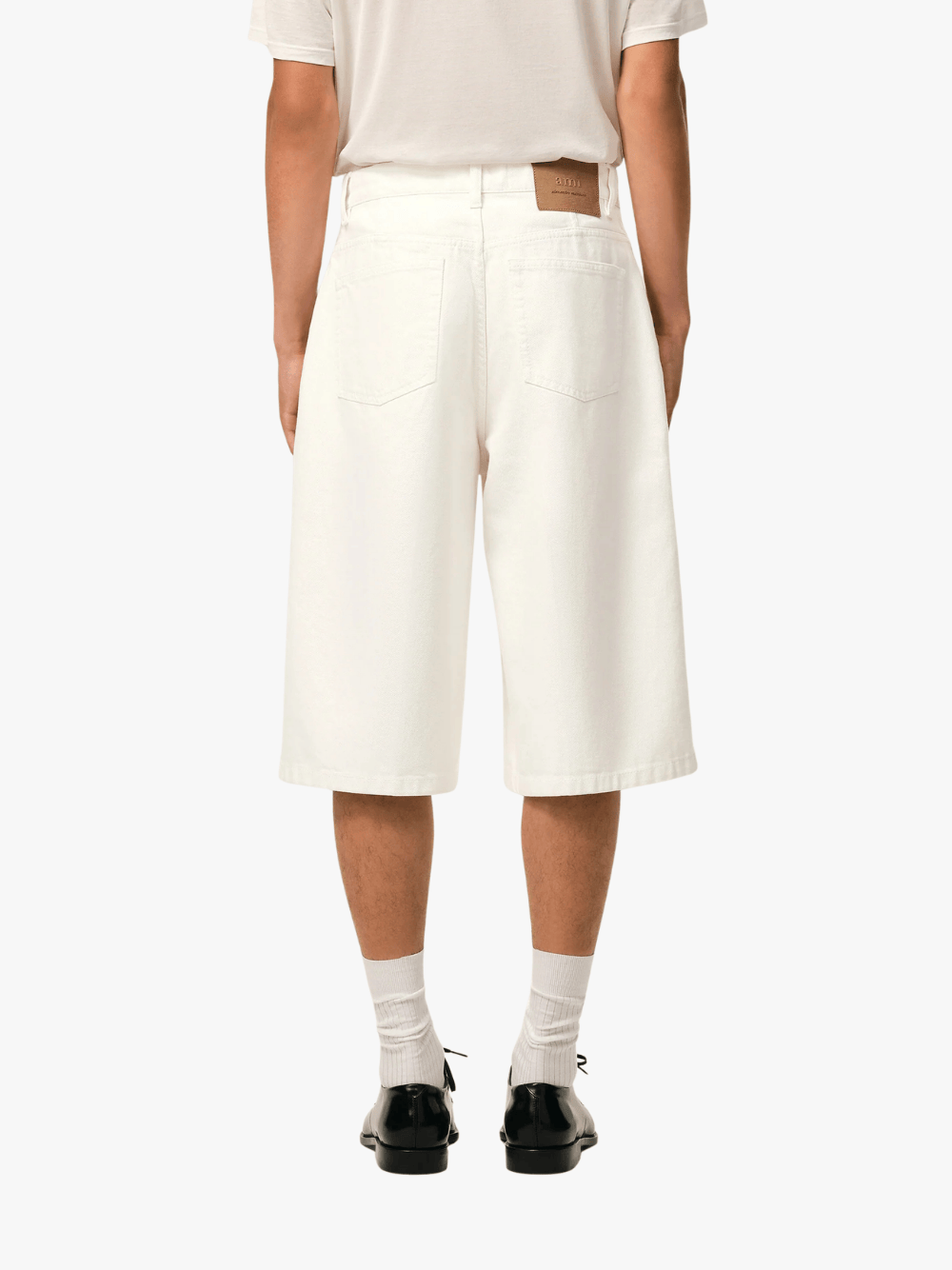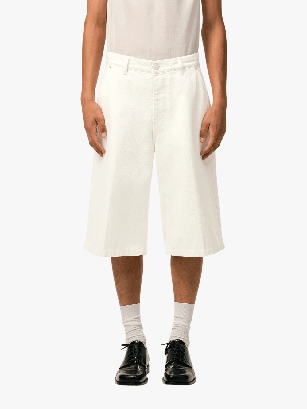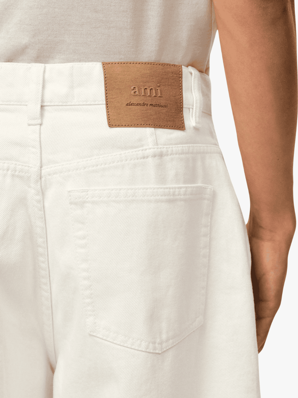 The Ami Paris White Cotton Loose Bermuda Shorts in white feature:
