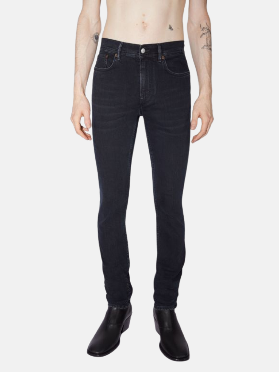 Acne Studios jeans featuring: Comfortable stretch denim, Mid-rise waistband, Tight leg fit, Regular length, Zip fly, Made in Italy.