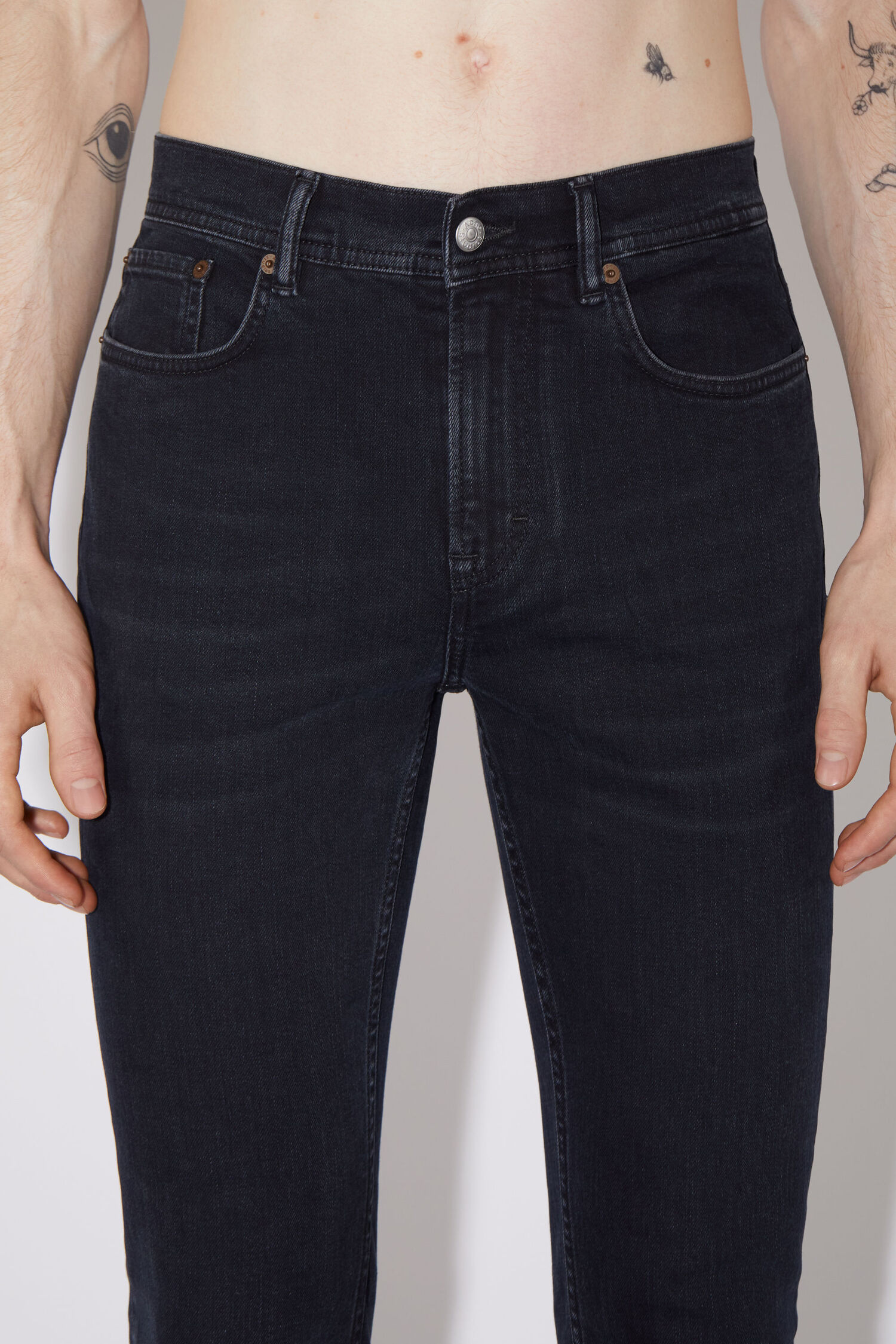 Acne Studios jeans featuring: Comfortable stretch denim, Mid-rise waistband, Tight leg fit, Regular length, Zip fly, Made in Italy.
