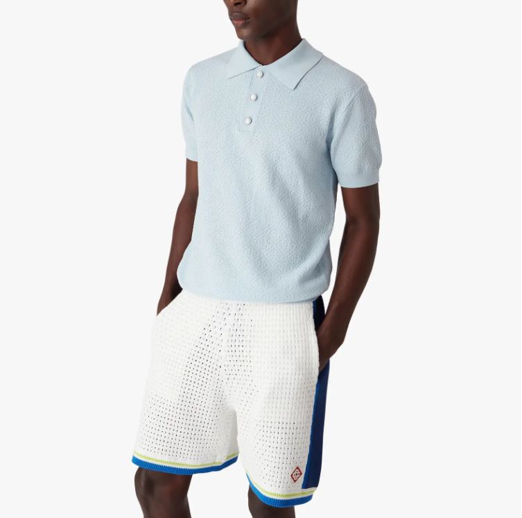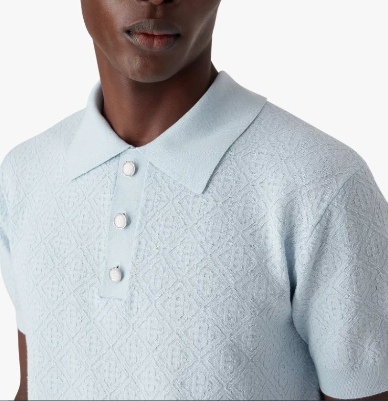 The Blue Pointelle Monogram Short-Sleeve Polo Shirt from Casablanca features: