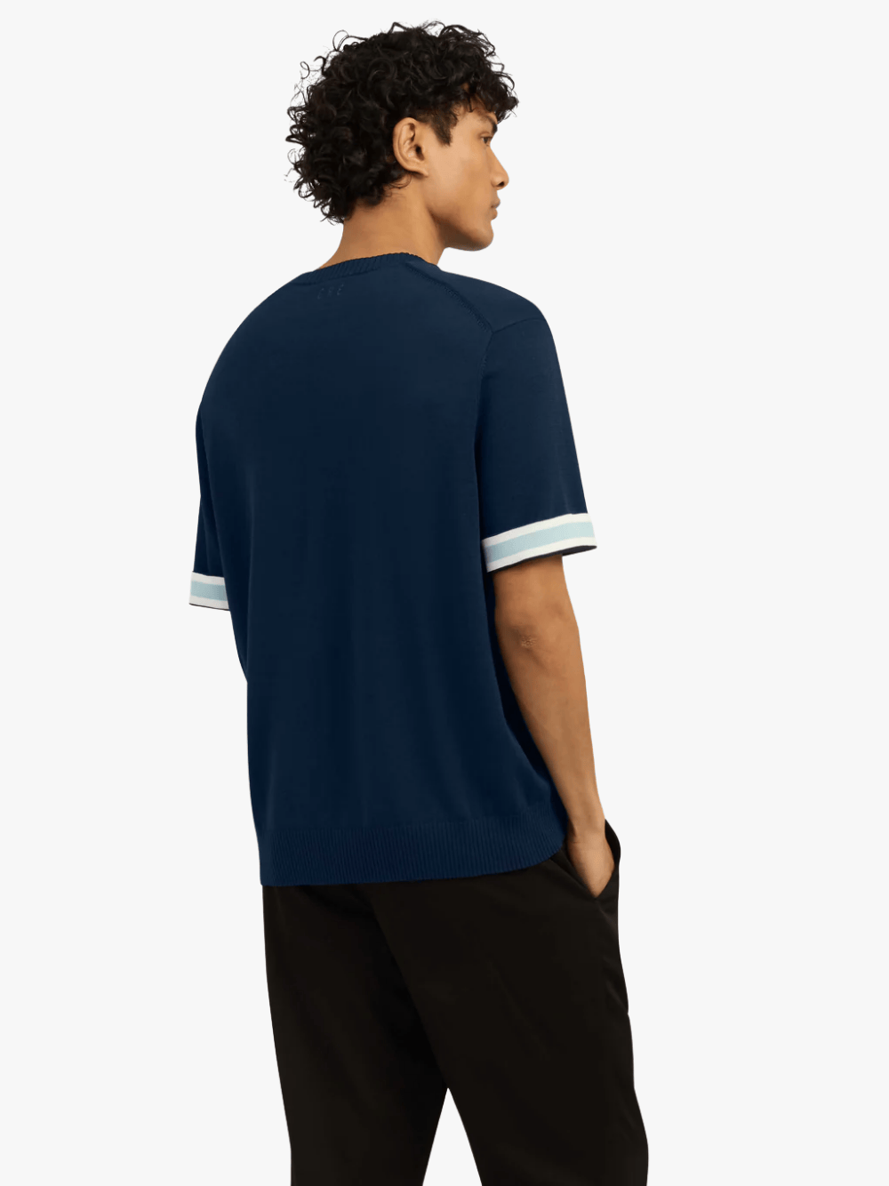 The Baller Knitted T-Shirt in navy from CHÉ Studios features: