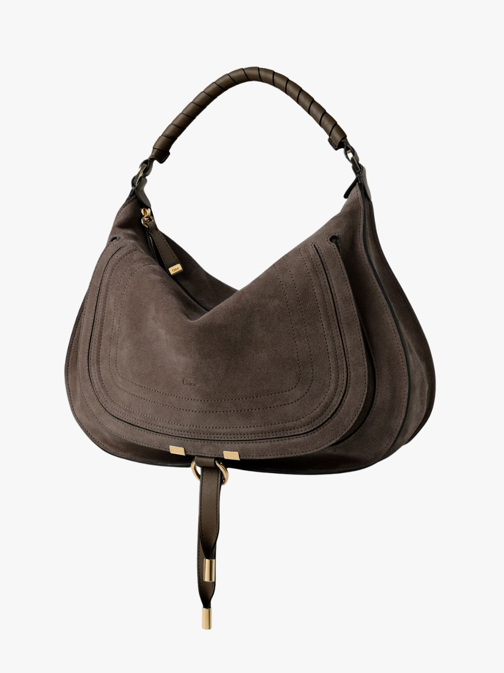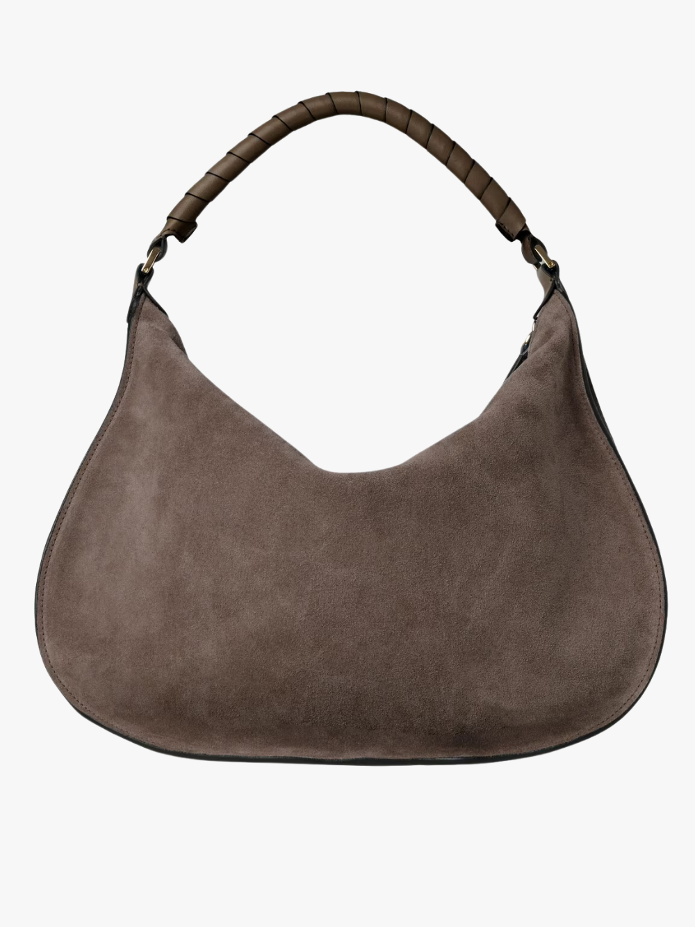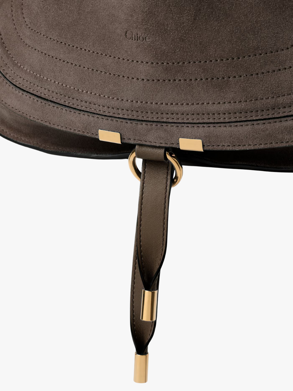 The Marcie Shoulder Bag in suede leather in kohl brown by Chloé features: