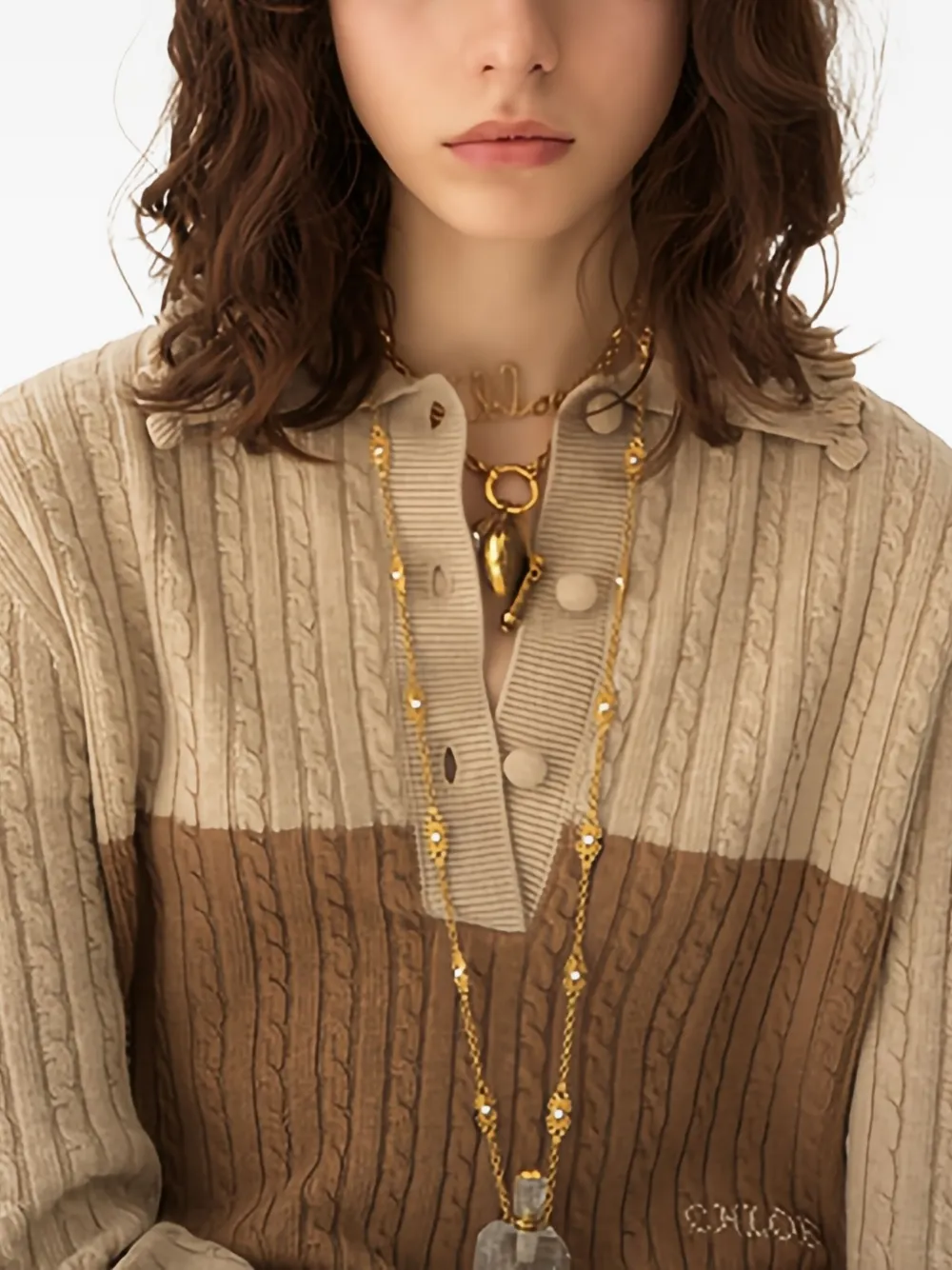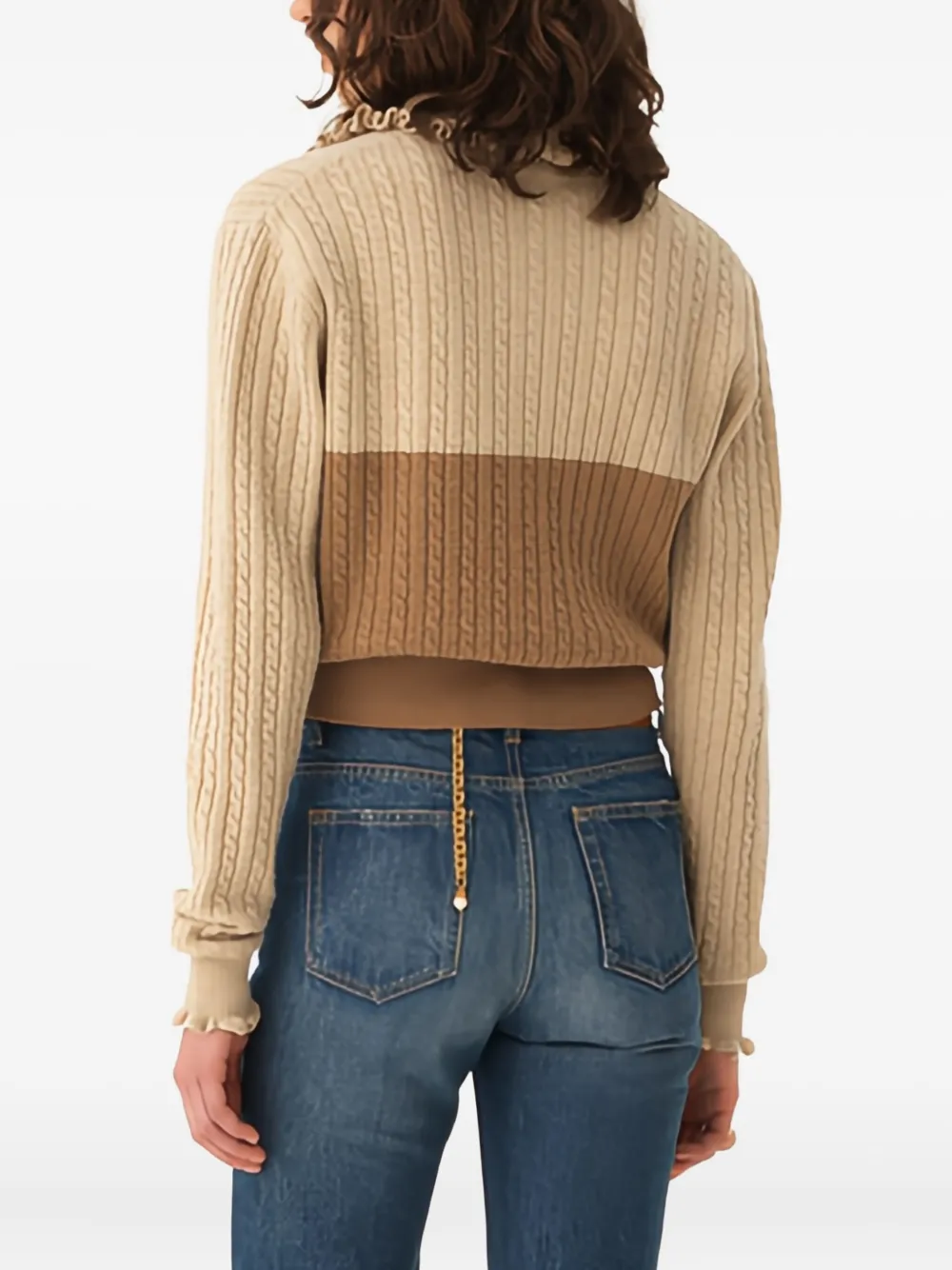 Two-tone cable knit sweater by Chloé with the following features: