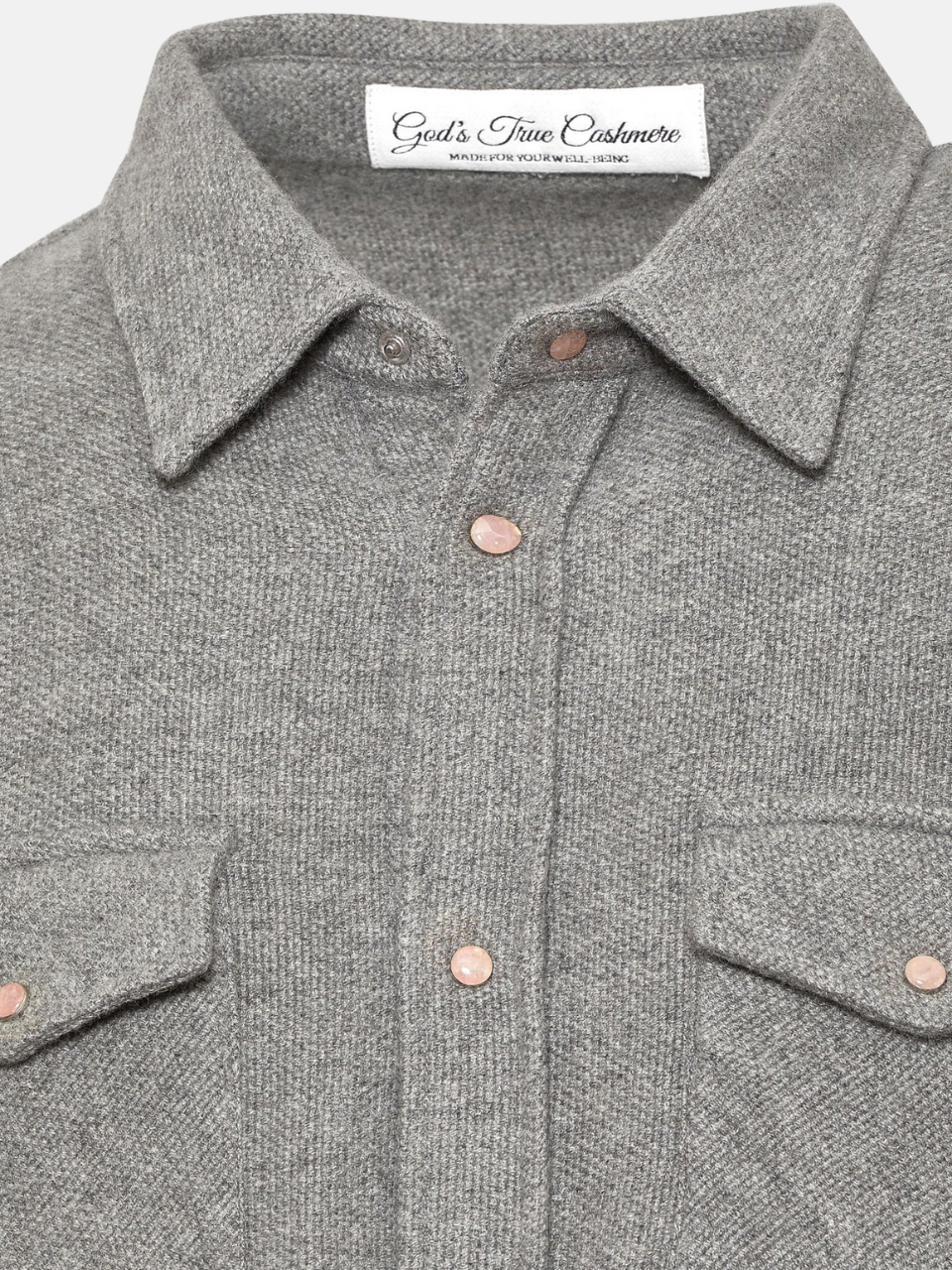 The Grey Solid Cashmere Shirt by God’s True Cashmere features the following characteristics:
