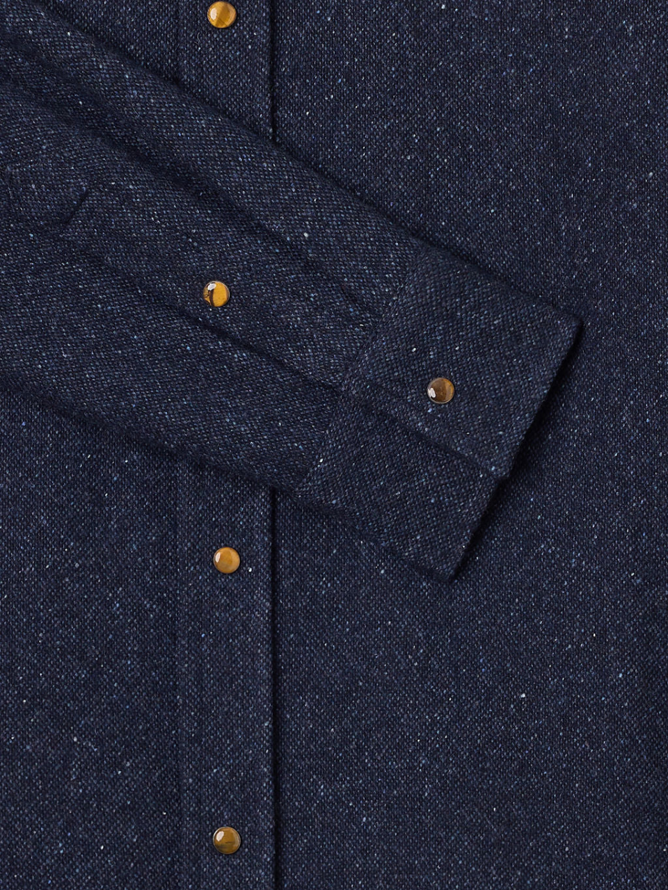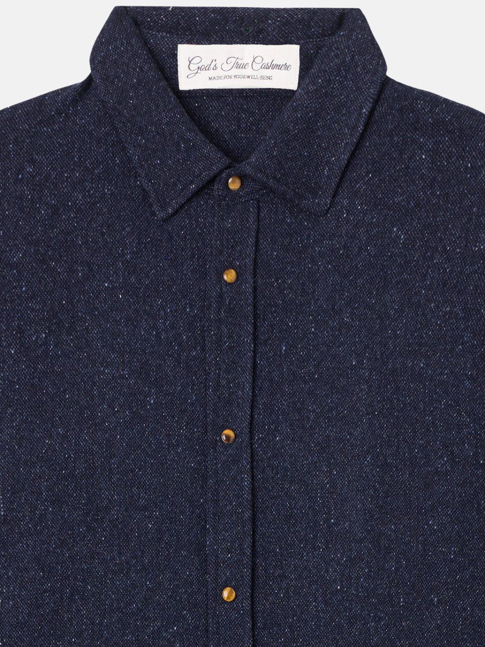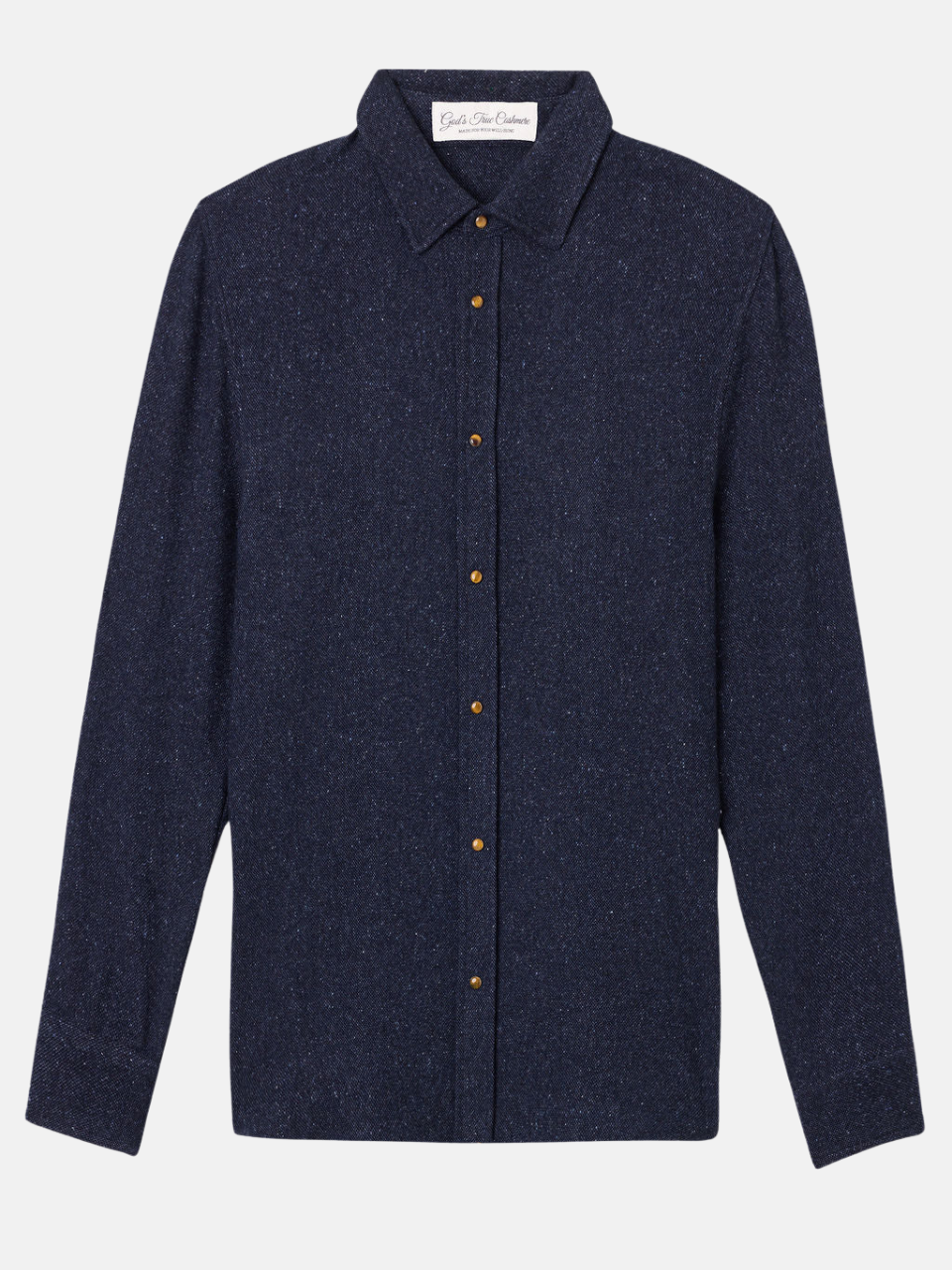 The Midnight Cashmere Twill Donegal Shirt by God’s True Cashmere features the following characteristics: