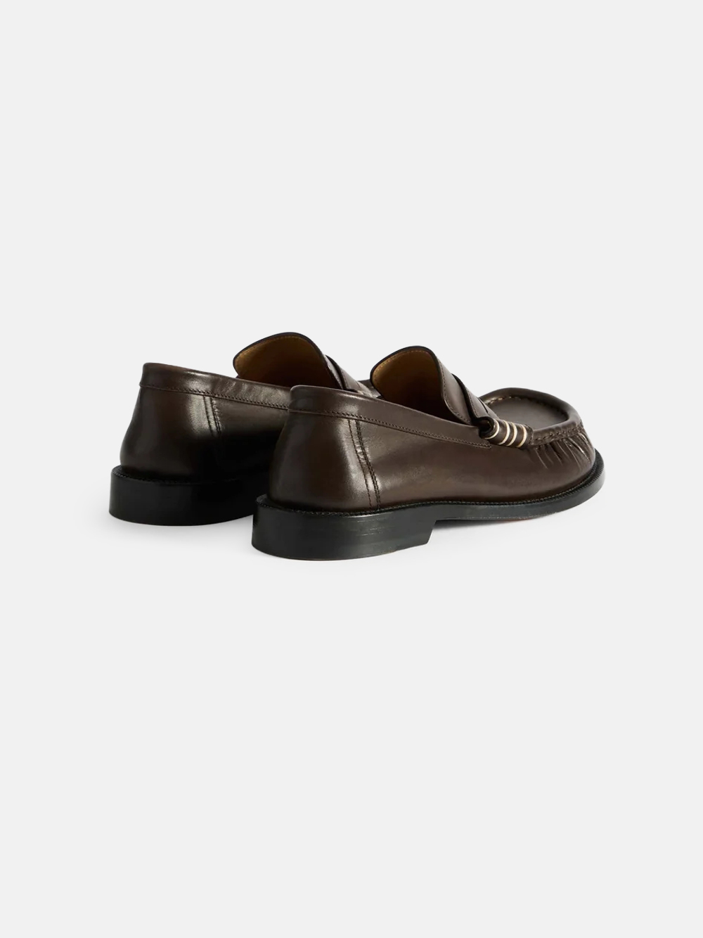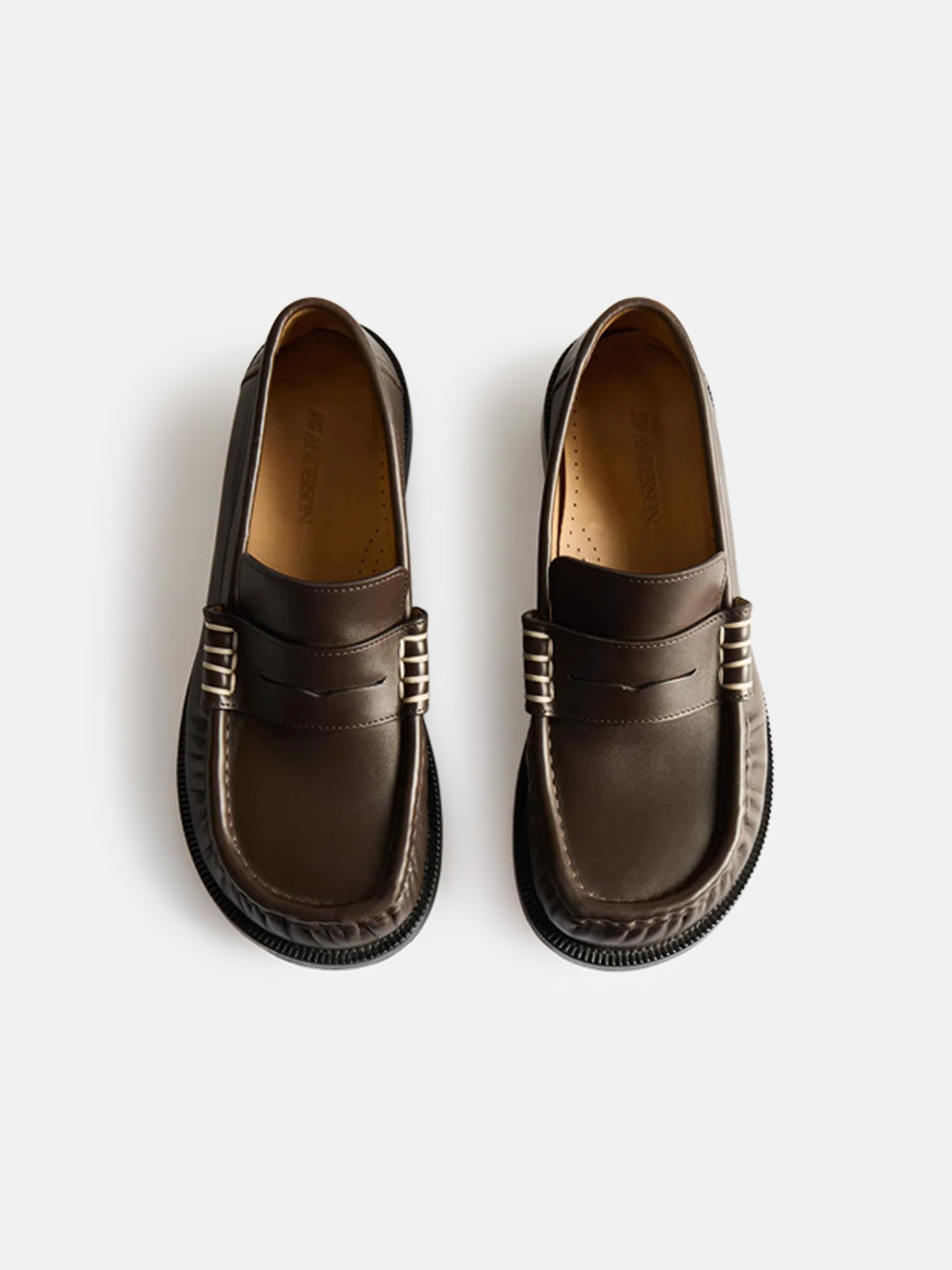 The Mens Loafer Moccasins in Chocolate Brown by JW Anderson feature the following characteristics: