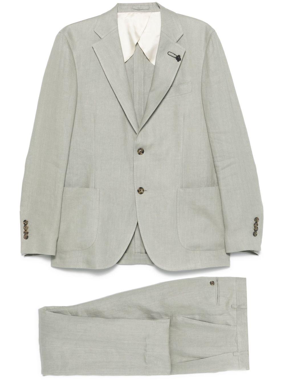 Suit from Lardini featuring front button fastening, front button and zip fastening, chest welt pocket, two side patch pockets.