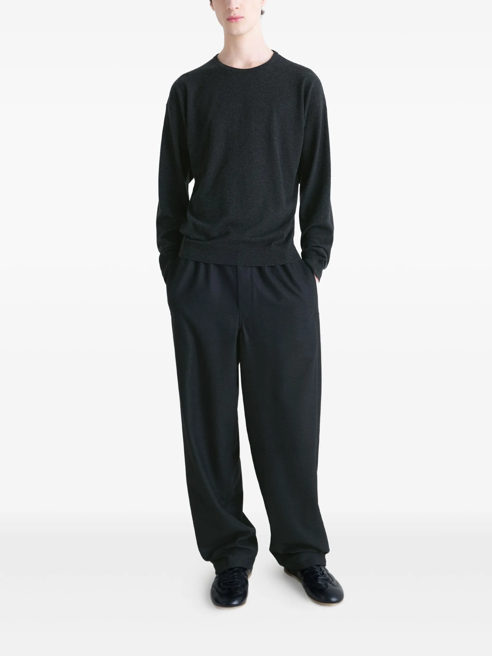 The Lemaire Crew‑Neck Wool‑Blend Sweater in Black features: