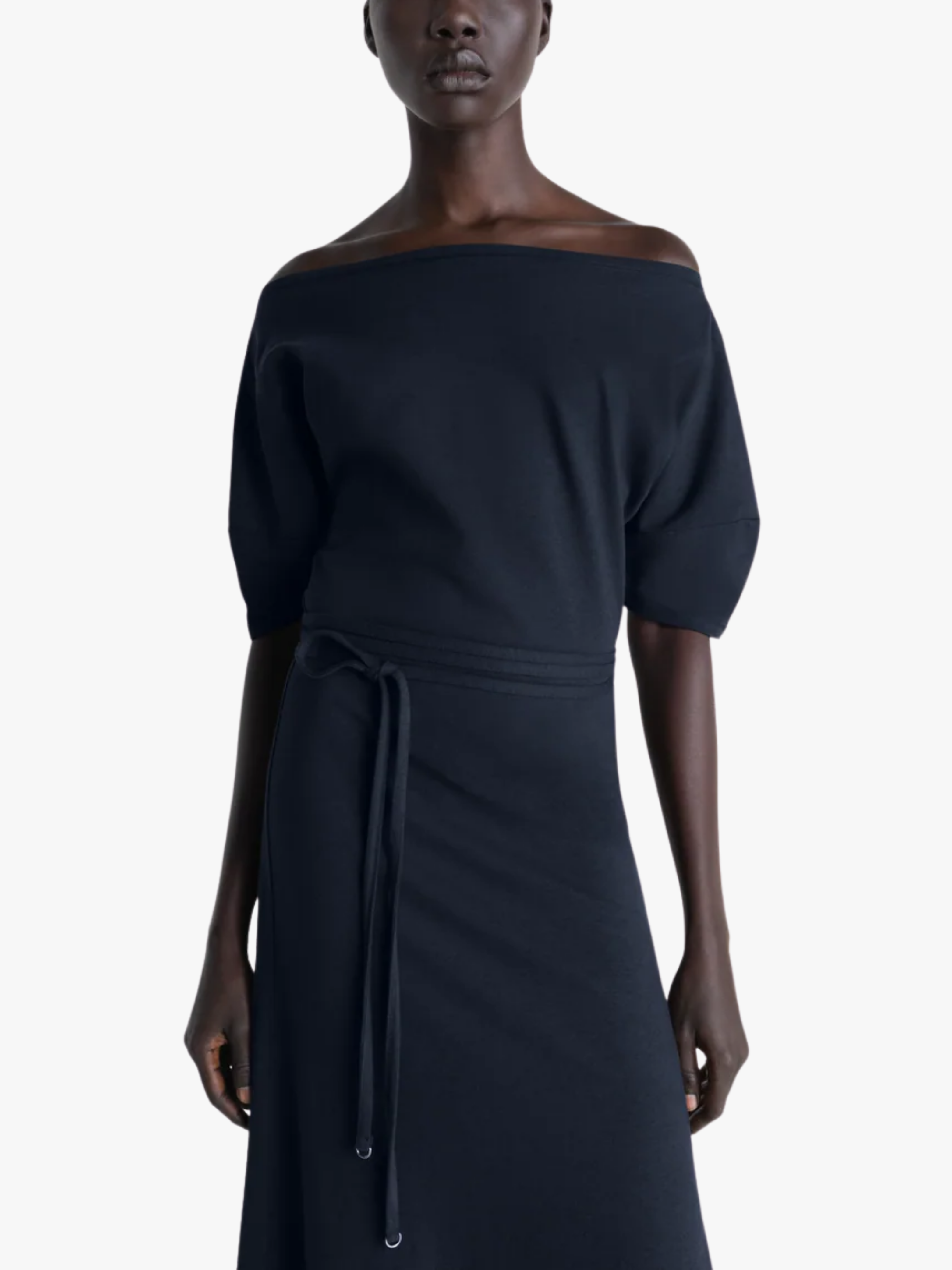 The Off-Shoulder Dress in Urchin by Lemaire features the following characteristics: