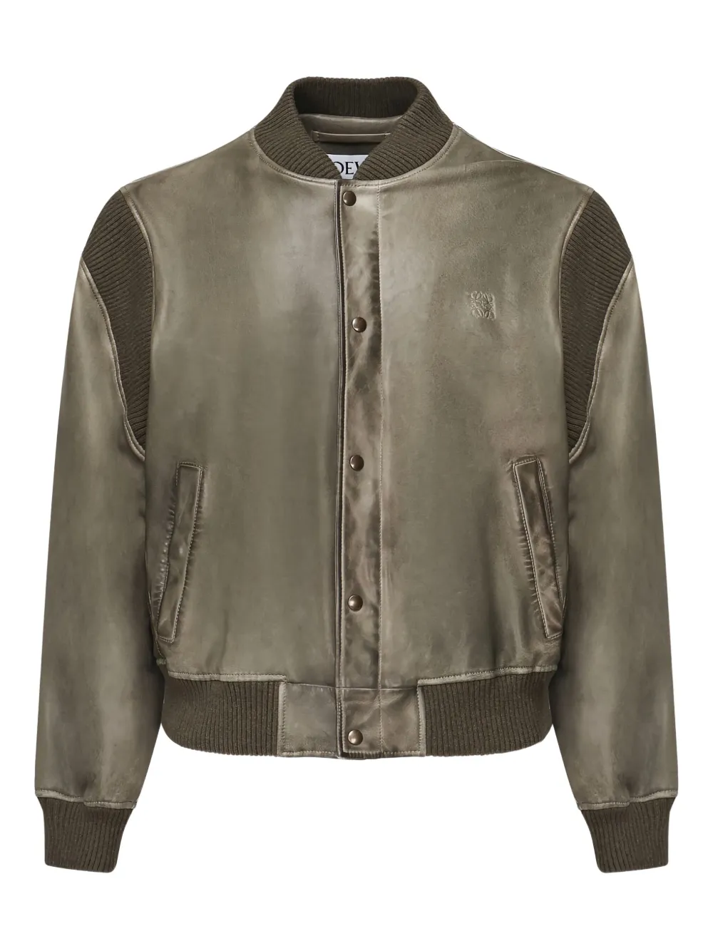 The bomber jacket with logo embossing by Loewe in green with the following features: