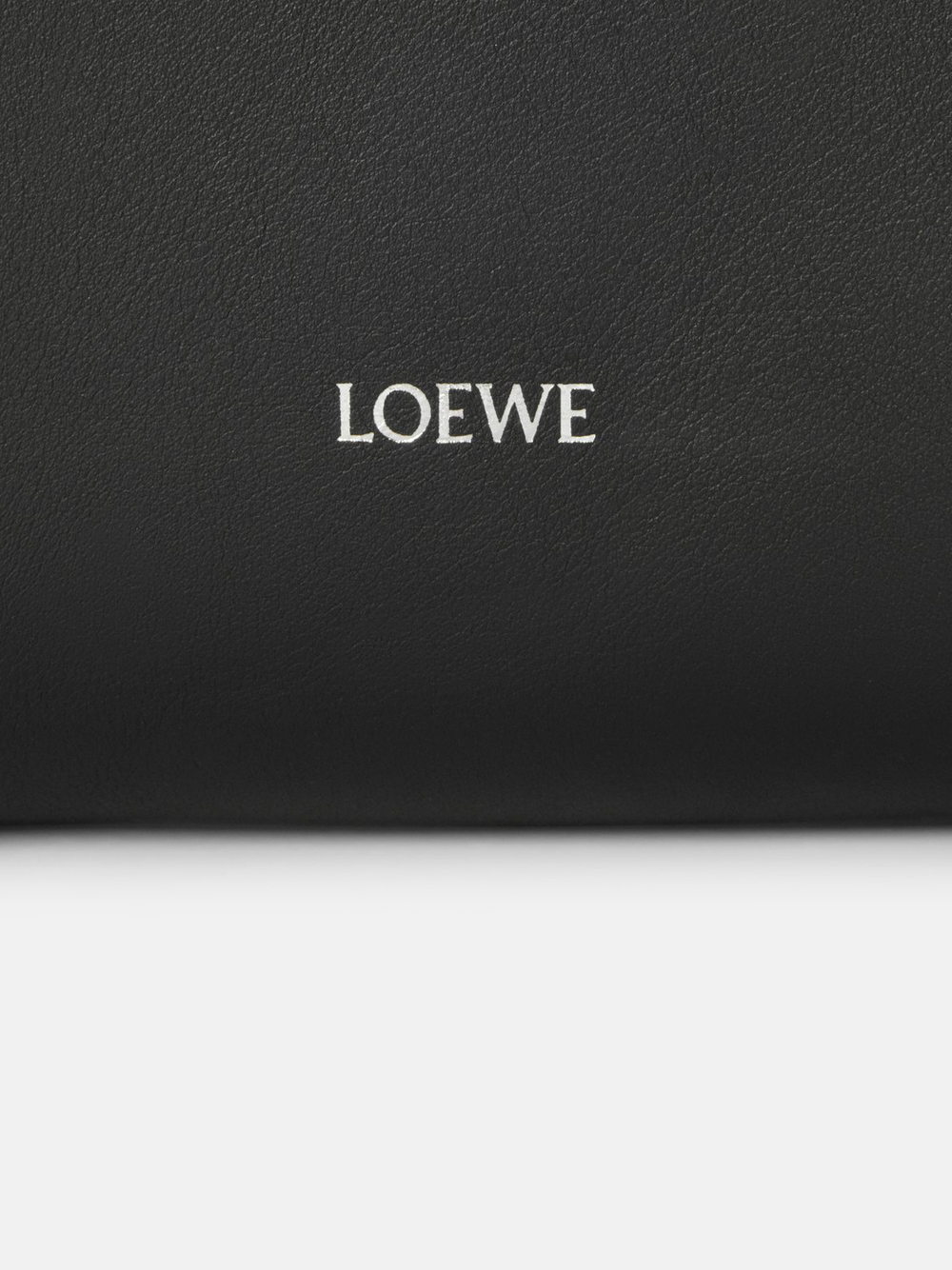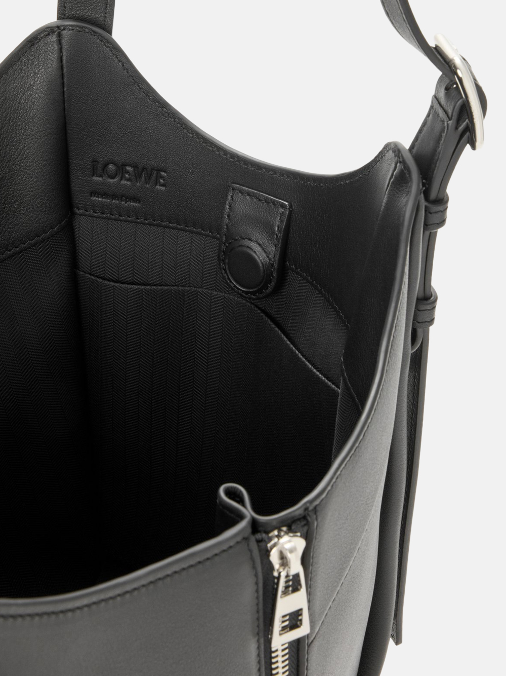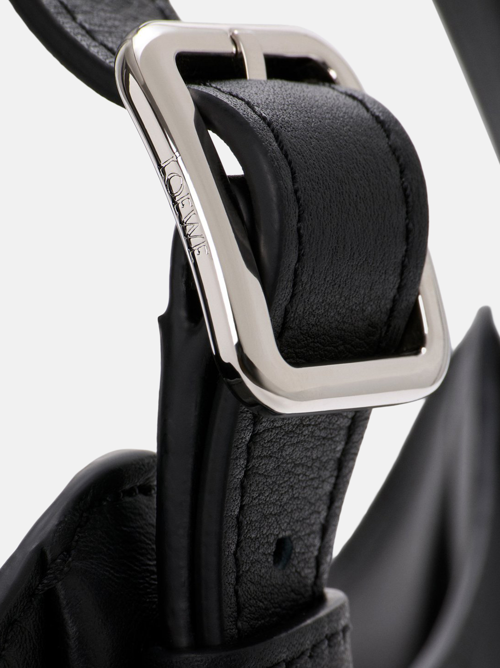 The Hammock Flip Bag in black, made from classic calfskin leather by Loewe, with the following features: