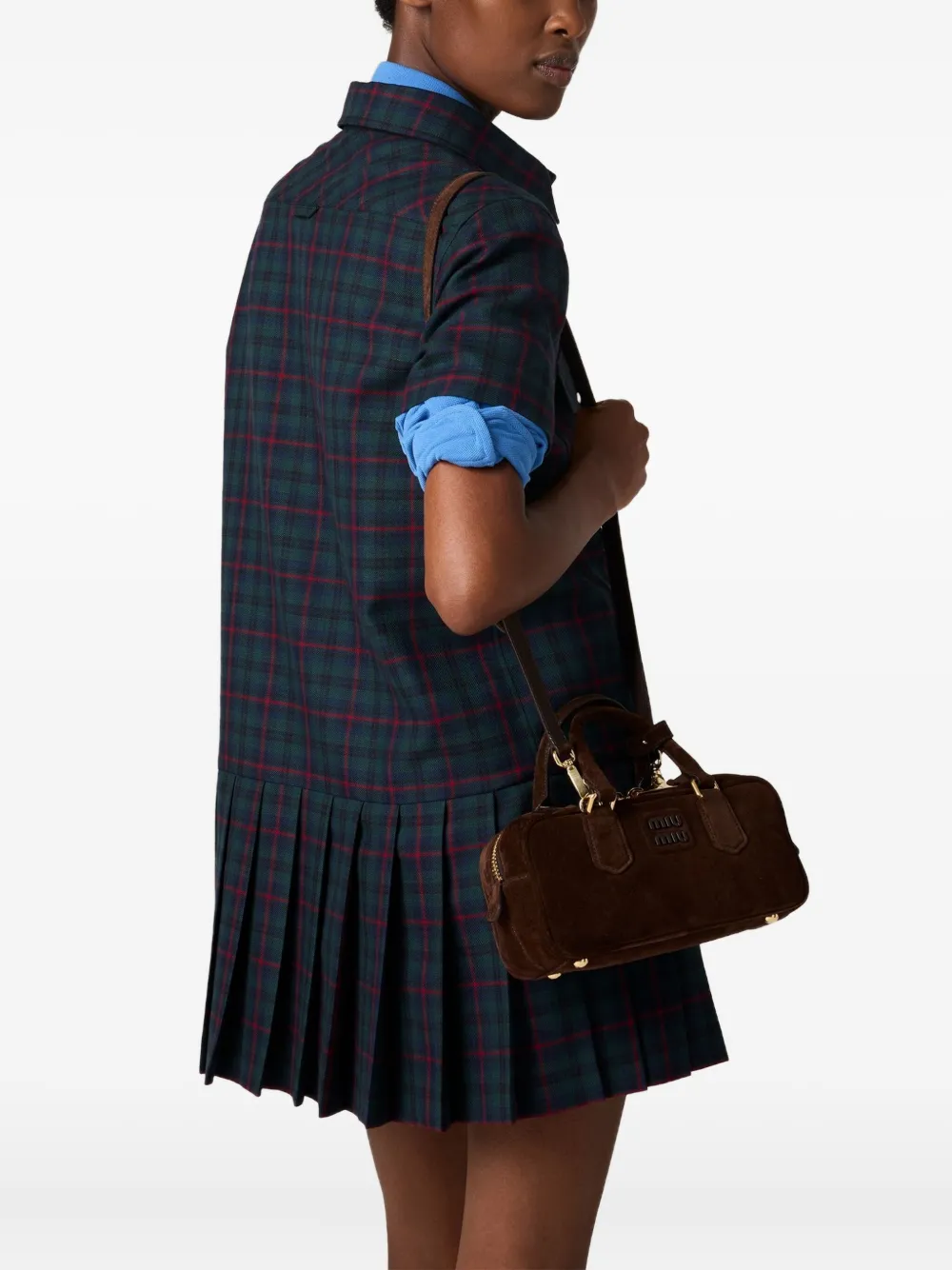 Arcadie padded suede handle bag by Miu Miu with the following features: