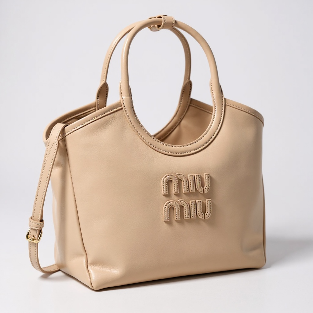The Ivy Small Soft Leather Handbag in Cipria by Miu Miu features: