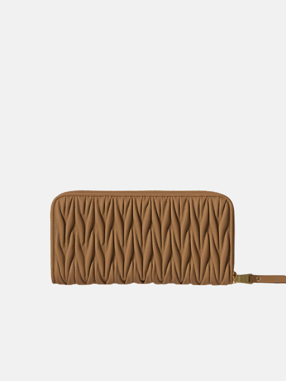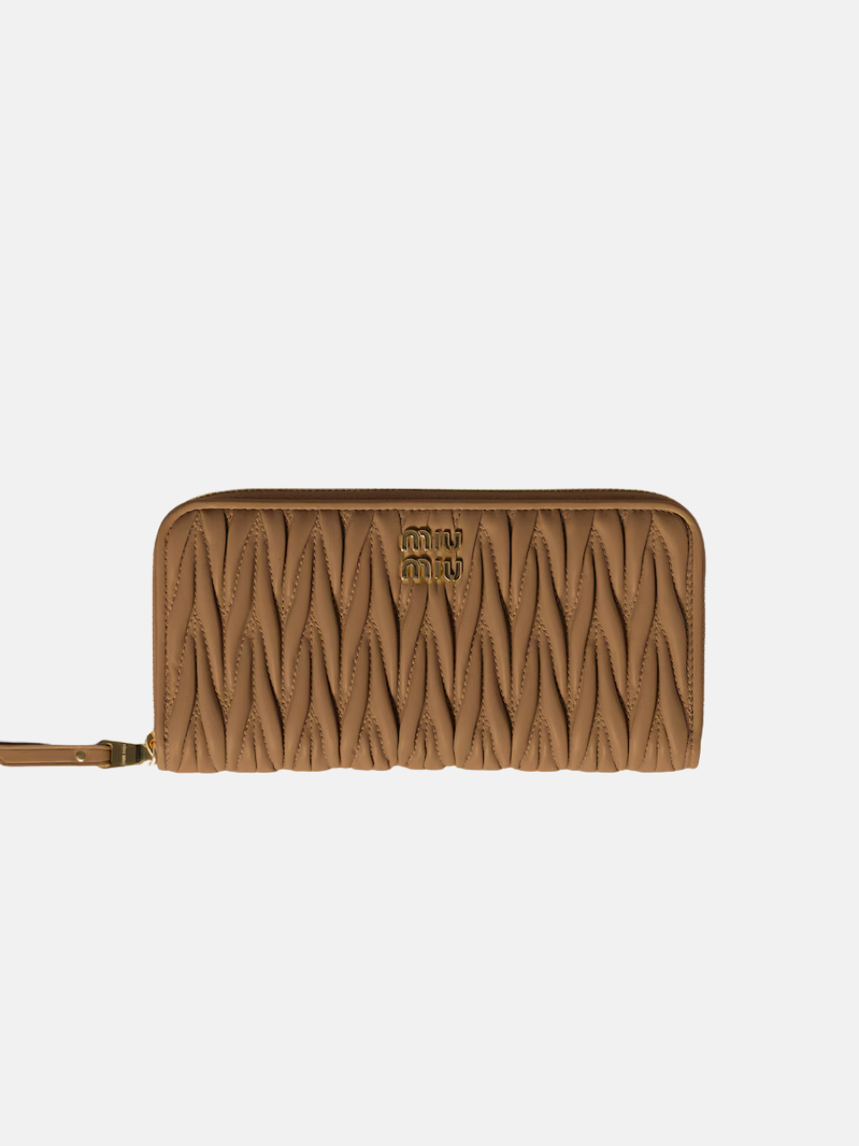 The large matelassé nappa leather wallet in black by Miu Miu features the following characteristics: