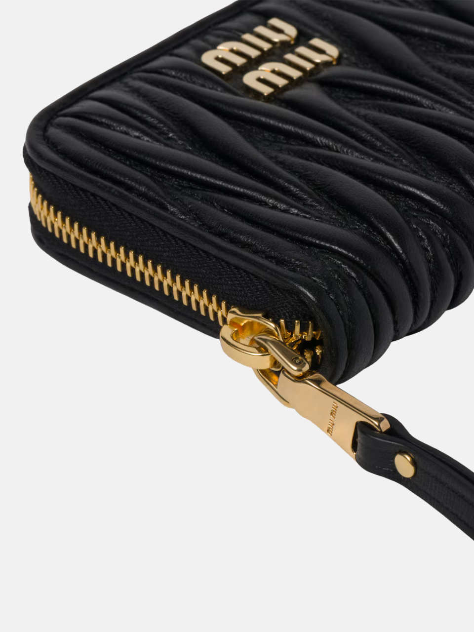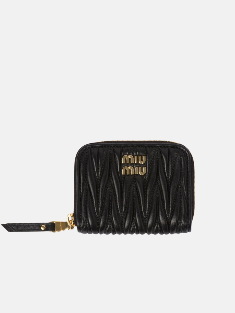 The Matelassé Nappa Leather Coin Purse in Black by Miu Miu features the following characteristics: