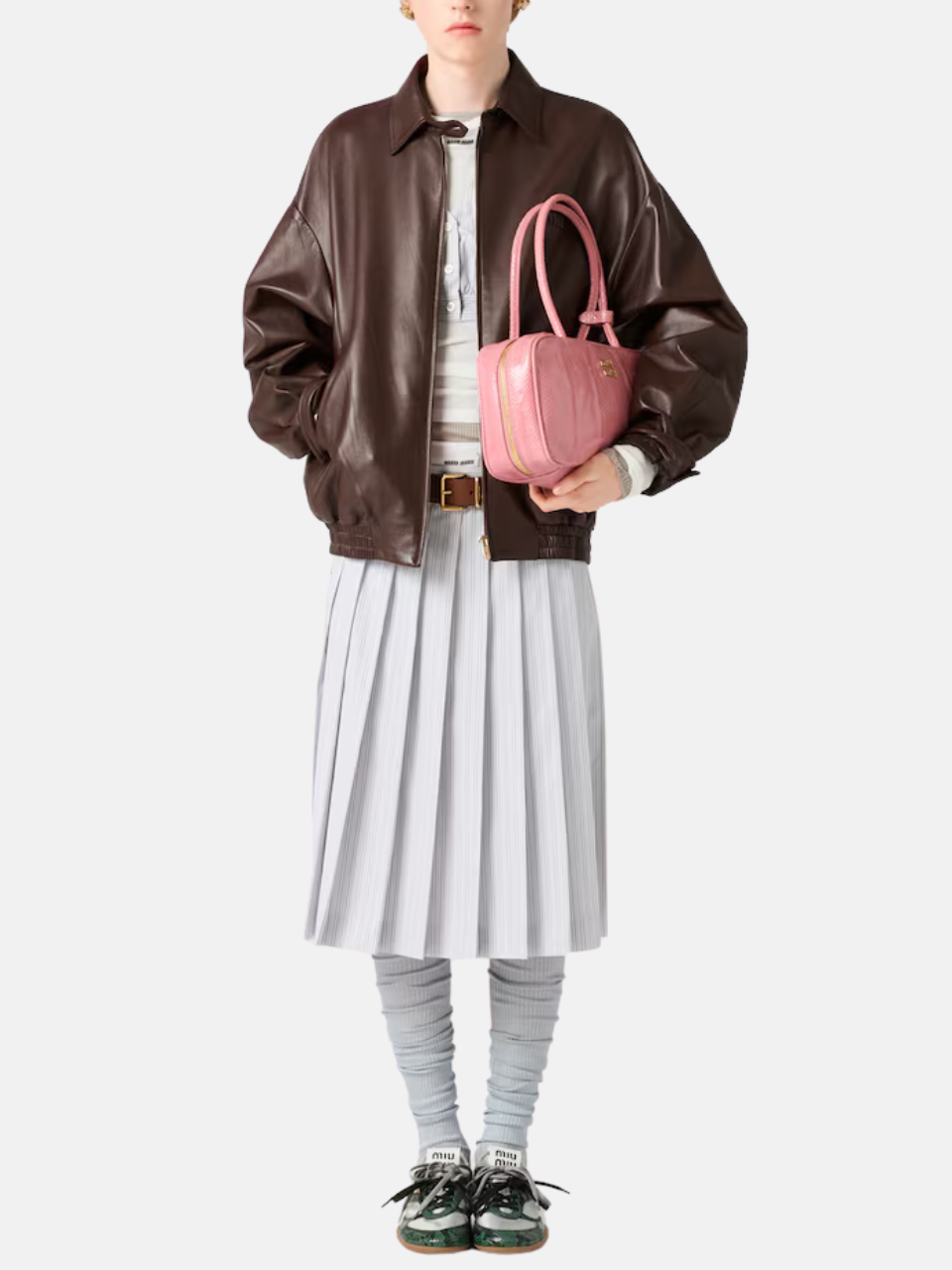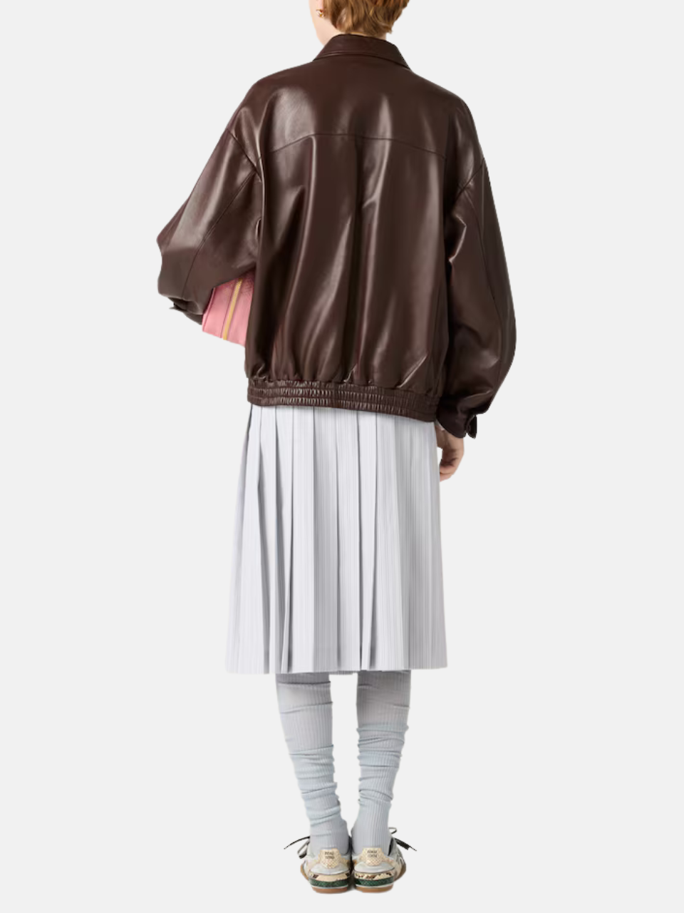 The Nappa Leather Blouson Jacket in Sienna by Miu Miu with the following features: