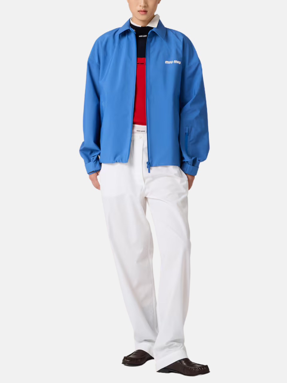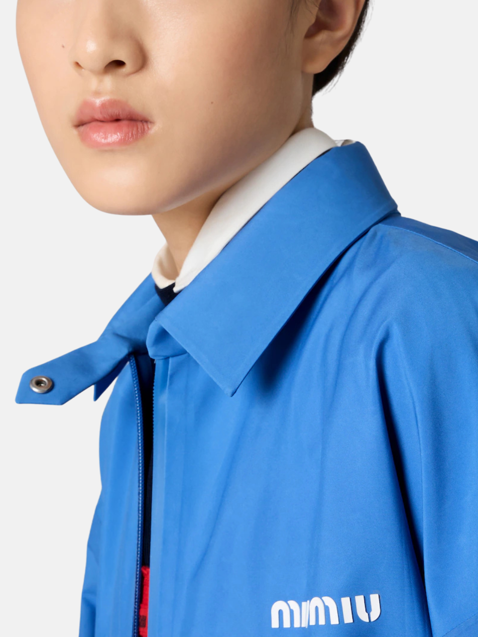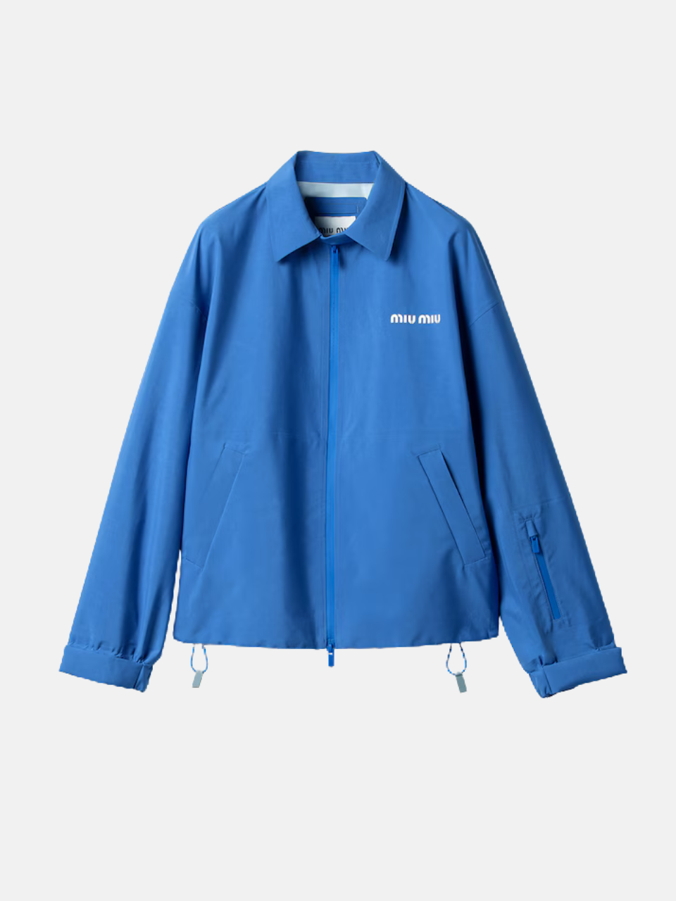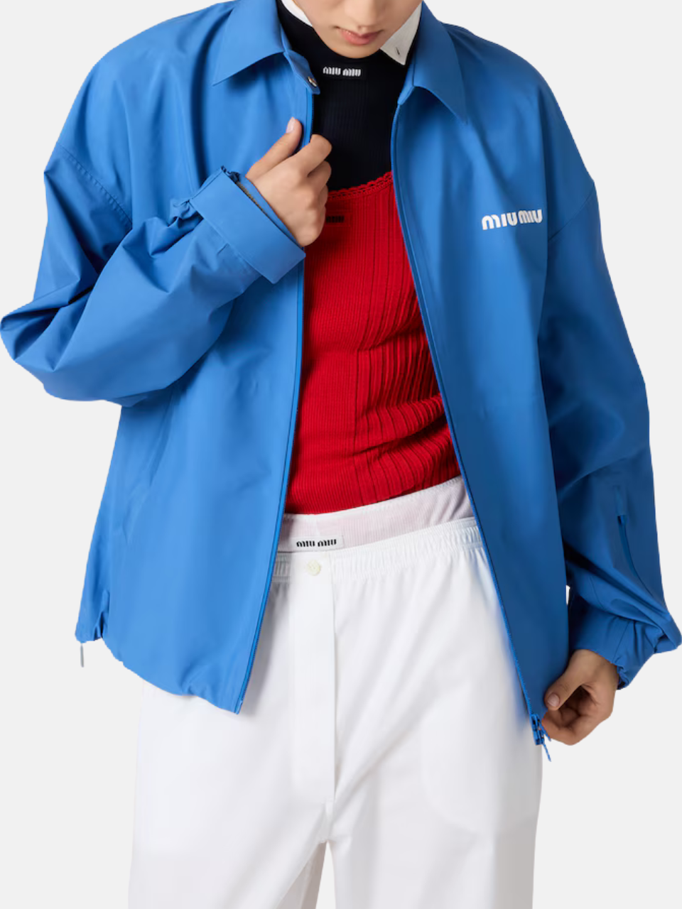 The windbreaker in functional fabric in light blue by Miu Miu with the following features: