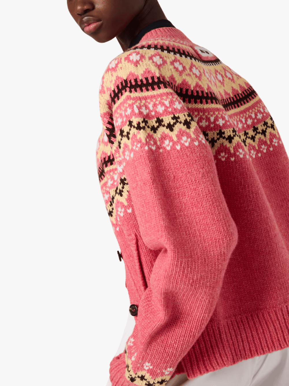The pink wool cardigan by Miu Miu features the following characteristics: