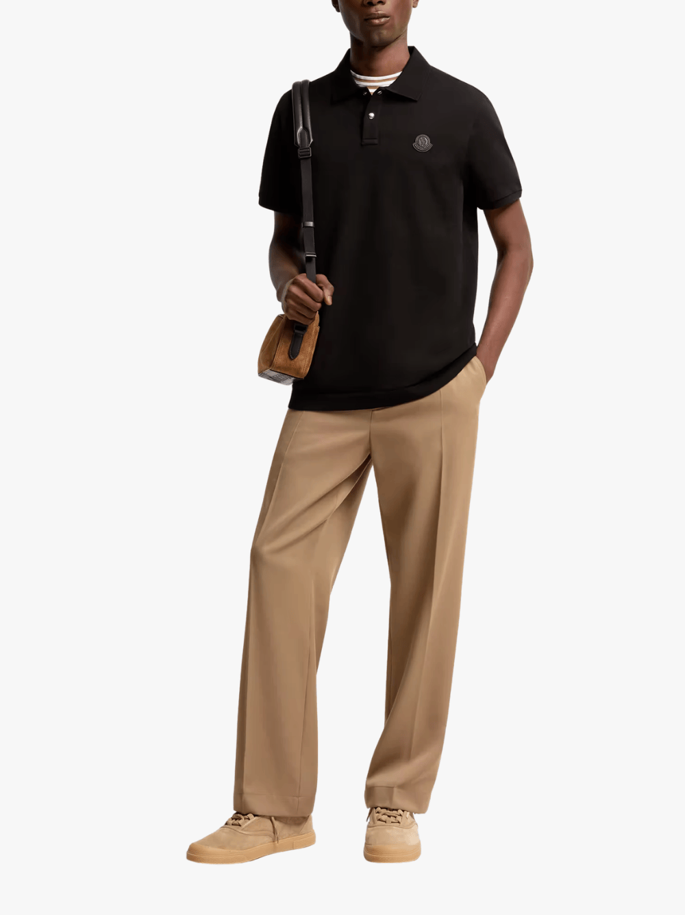 The black cotton polo shirt with a logo patch from Moncler features the following: