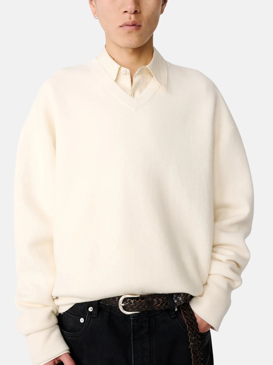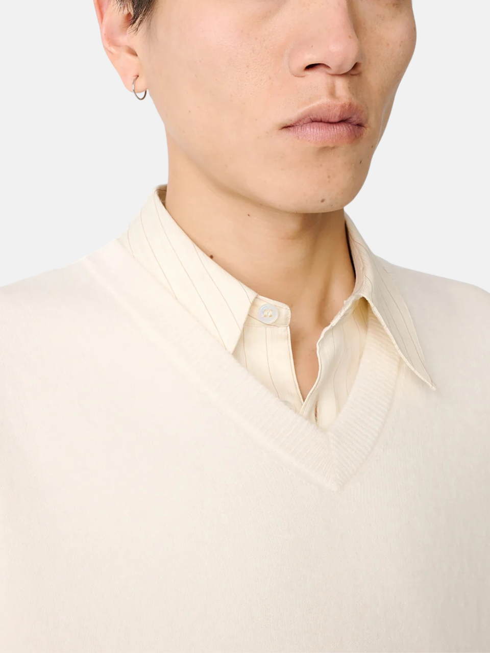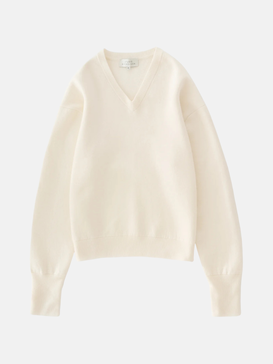 - Fine 12 gg knit with a V-neck and ribbed cuffs for classic details and a luxurious finish.