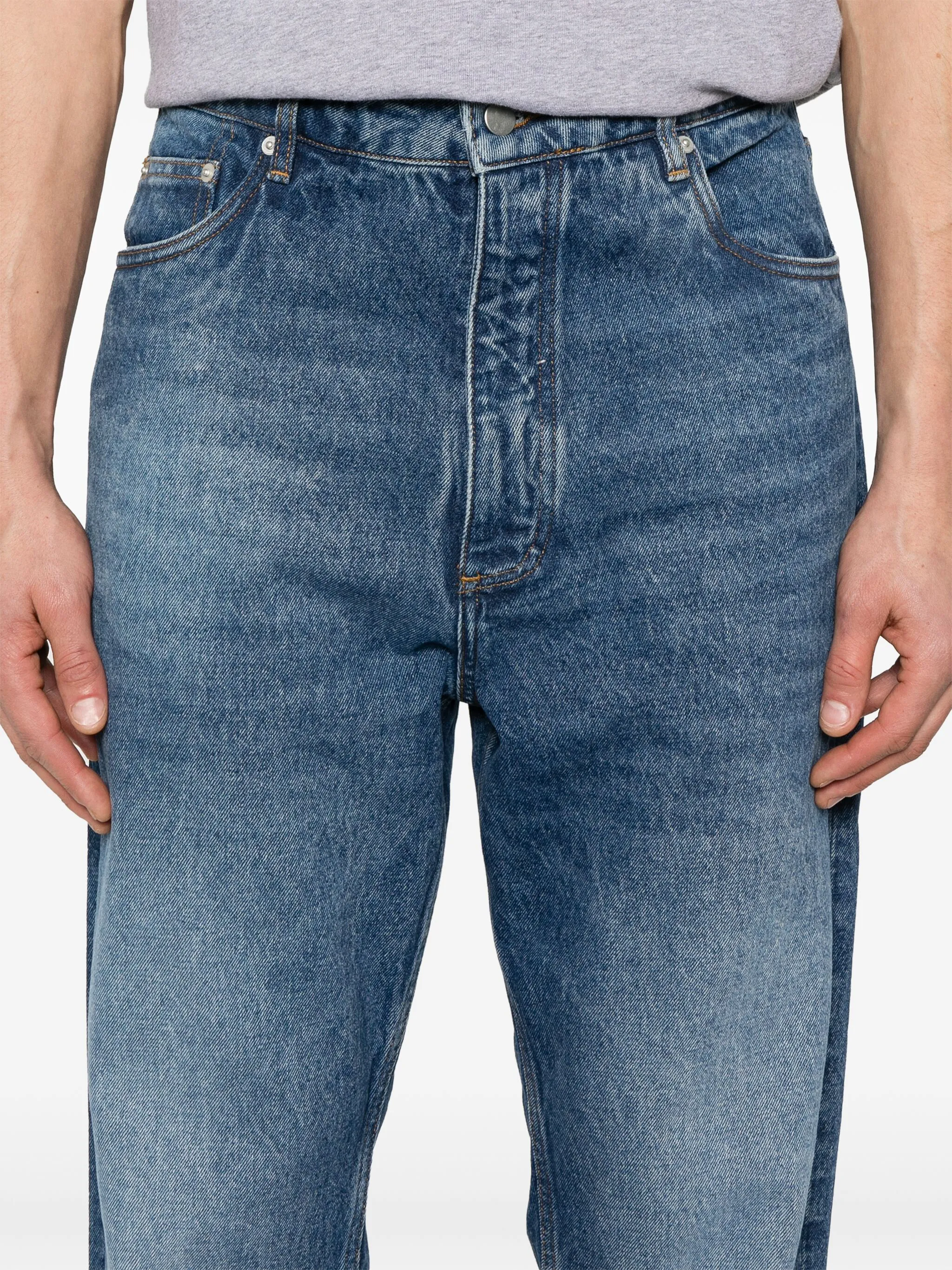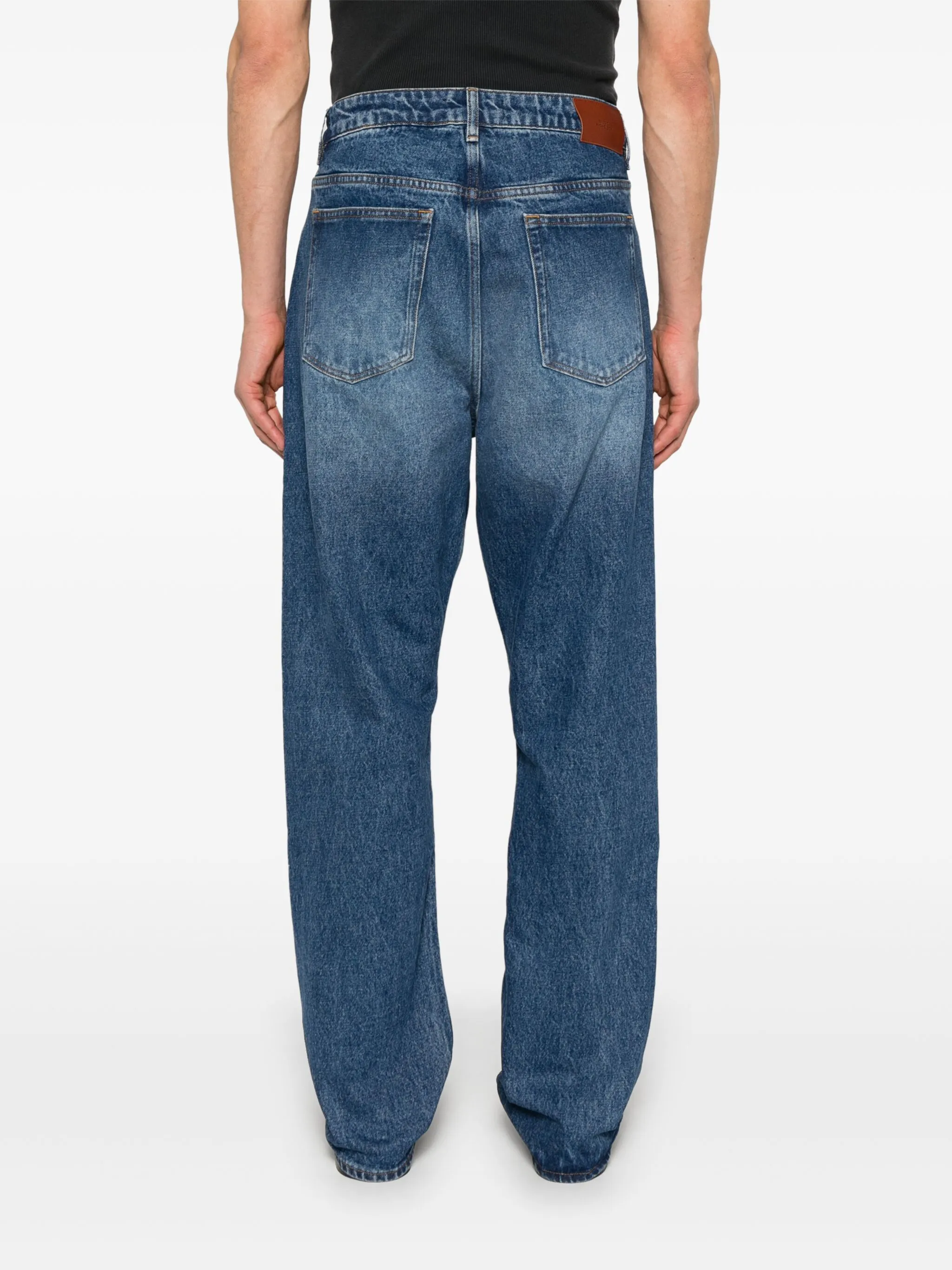 Jeans from Studio Nichsolson featuring front button and zip fastening, belt loops, classic five pockets, logo patch to the rear.