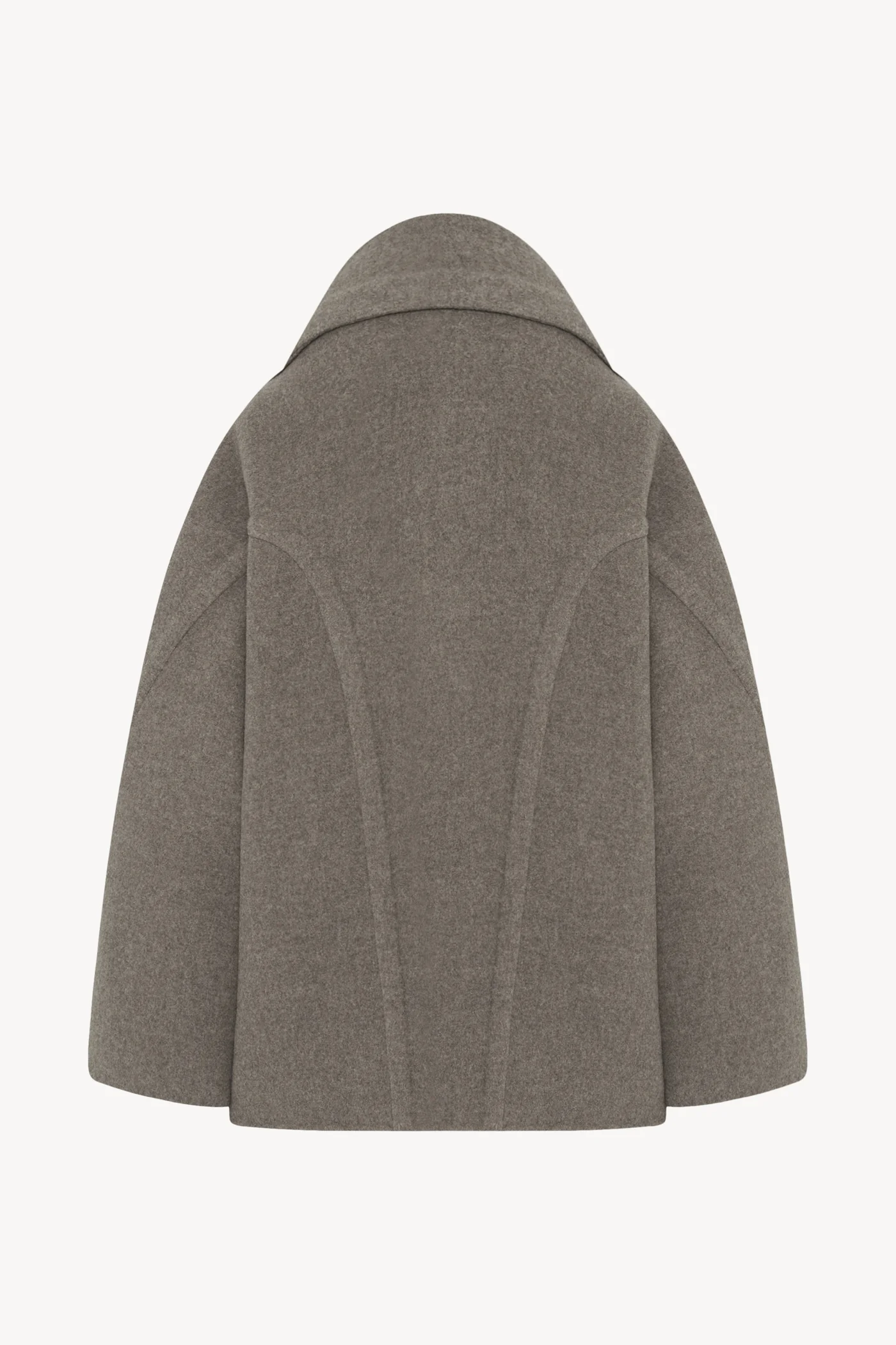 • Oversized cocoon silhouette with a sculptural opera collar that gives the coat a soft yet architectural flow.