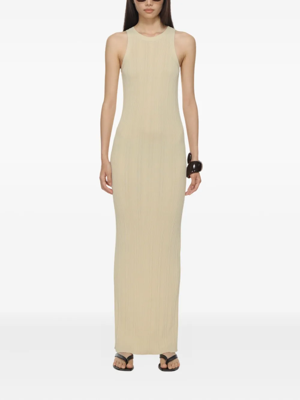 • Maxi length with a straight hem and slim column fit for an elegant appearance