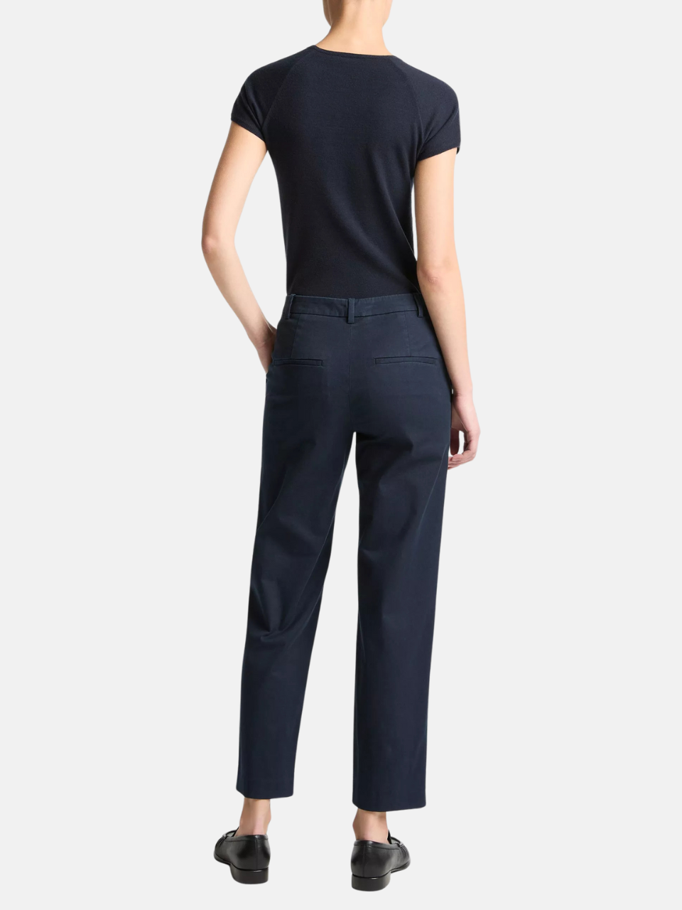 The Avery Mid-Rise Italian Stretch Cotton Chino Pant in Pale Tide by Vince features the following characteristics: