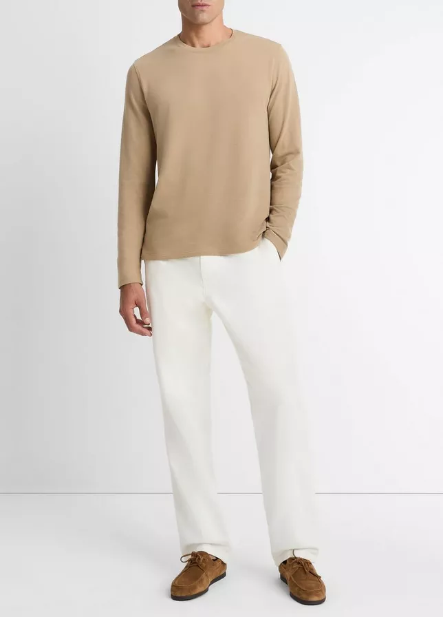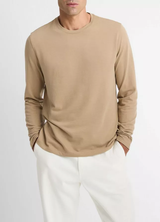 The Birdseye Jacquard Pima Cotton Long-Sleeve T-Shirt in gray from Vince features: