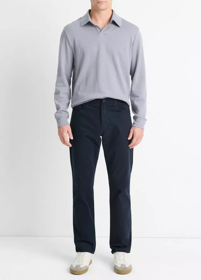 The Dylan Slim 5-Pocket Peached Stretch-Cotton Pant in Coastal Blue from Vince features: