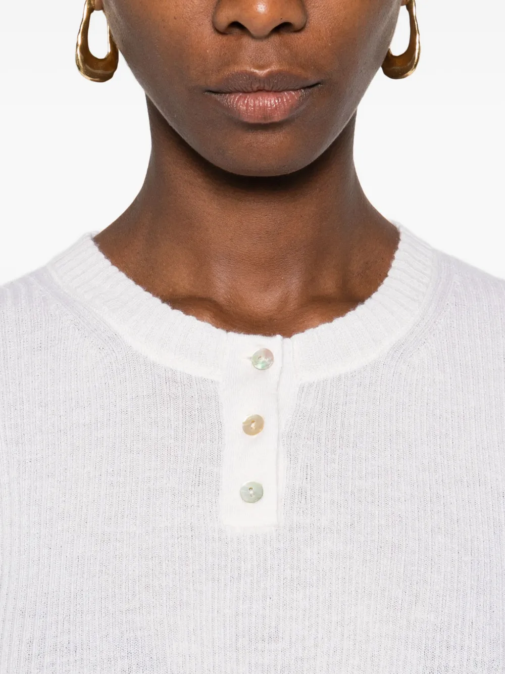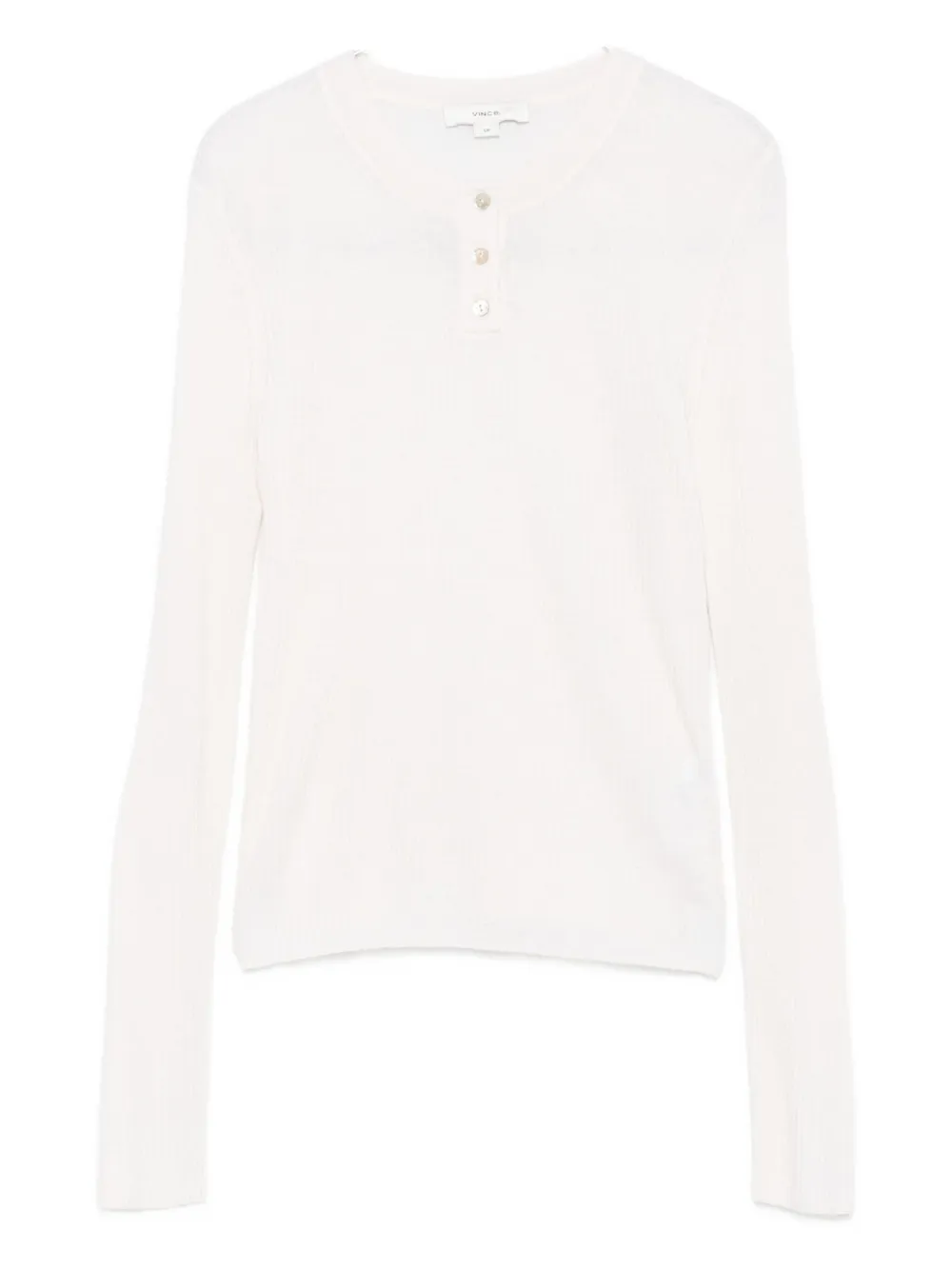 The Ribbed Cashmere-Silk Henley Sweater by Vince with the following features: