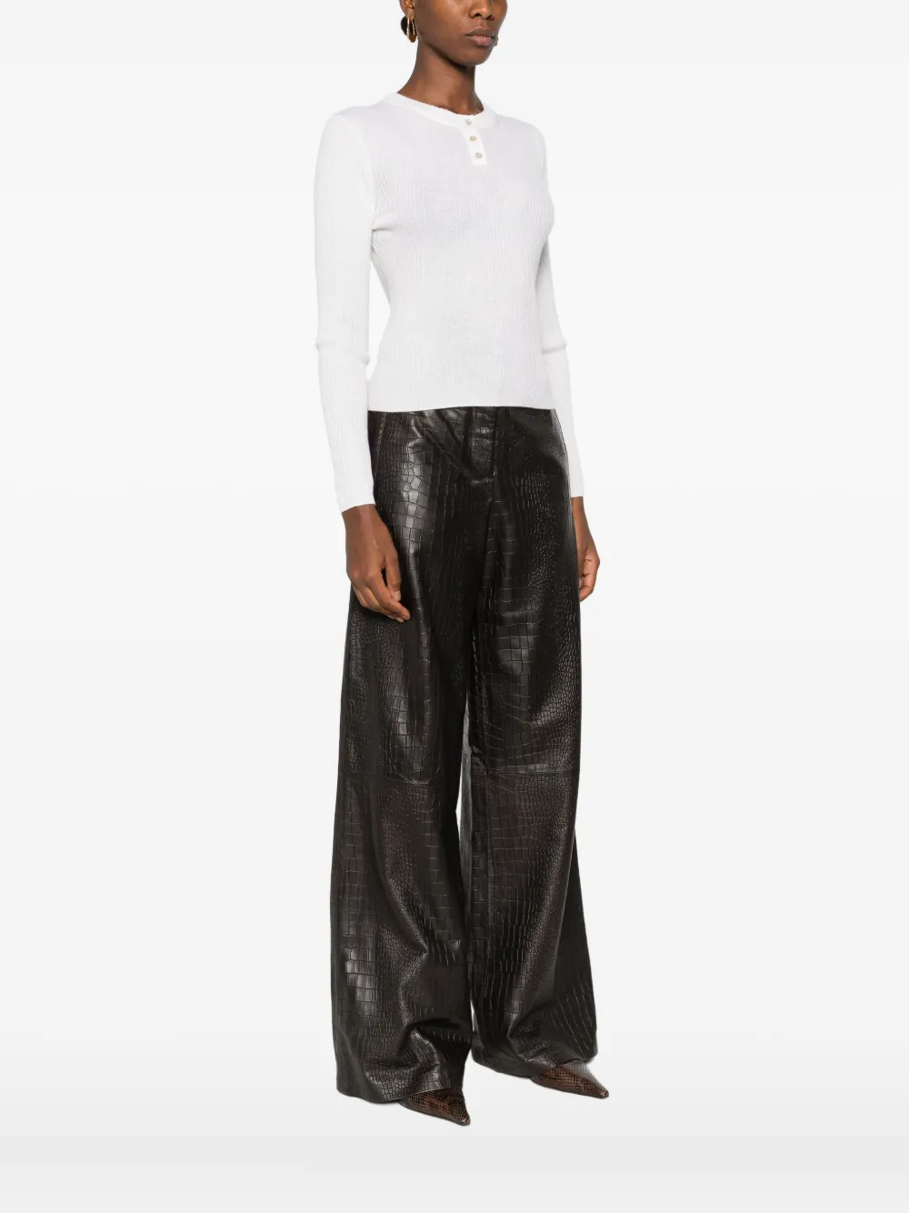 • Classic Henley neckline with three Agoya shell buttons